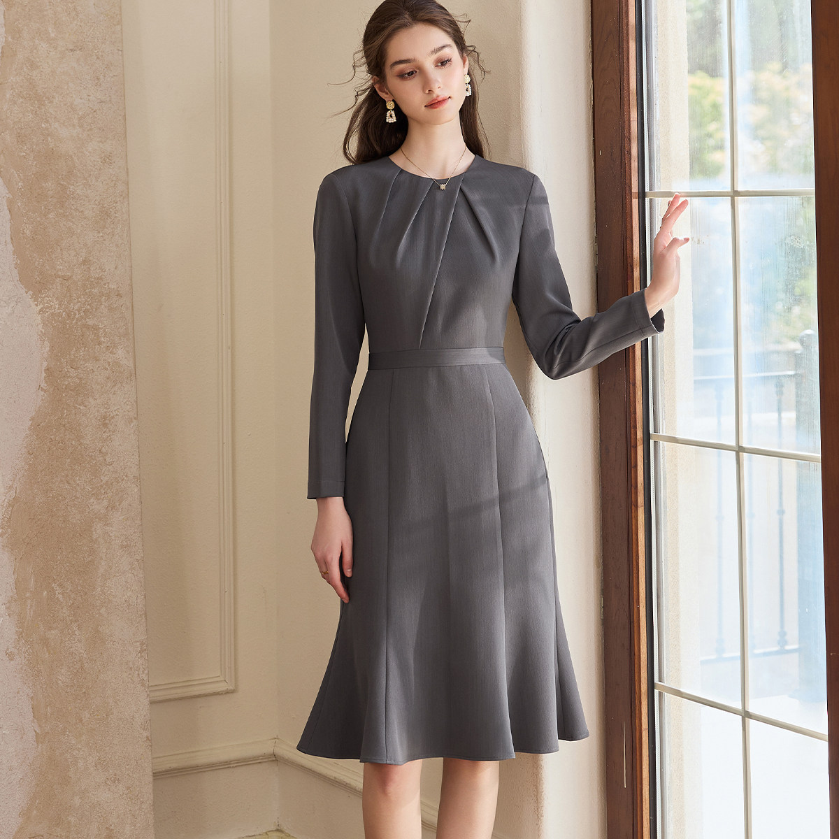 罗衣气质通勤收腰连衣裙设计感温柔女人味粉色内搭中长裙子11071