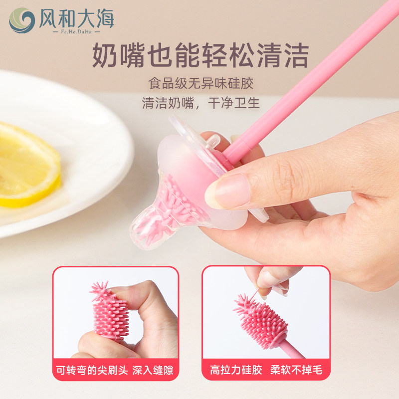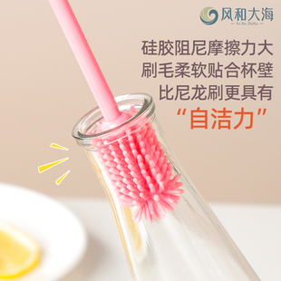 硅胶杯刷水瓶长柄清洁刷杯盖缝隙刷奶瓶建投刷吸管刷多功能清洁刷
