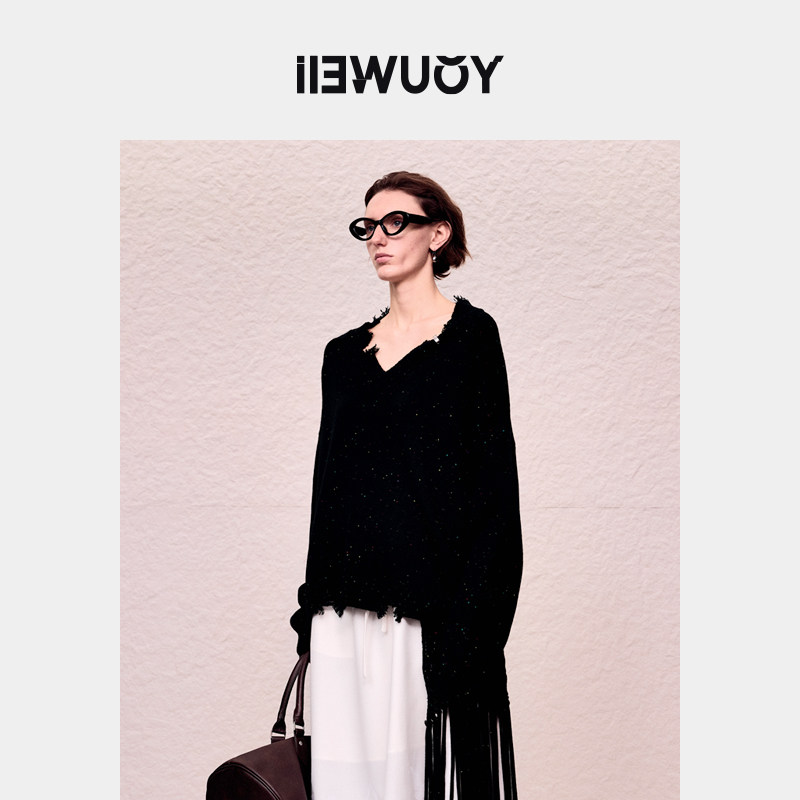 YOUWEI有尾2024秋季 少女提花流苏围巾v领毛衣女针织Y2124304