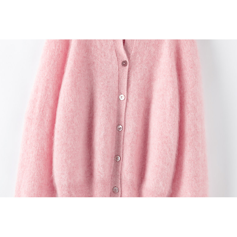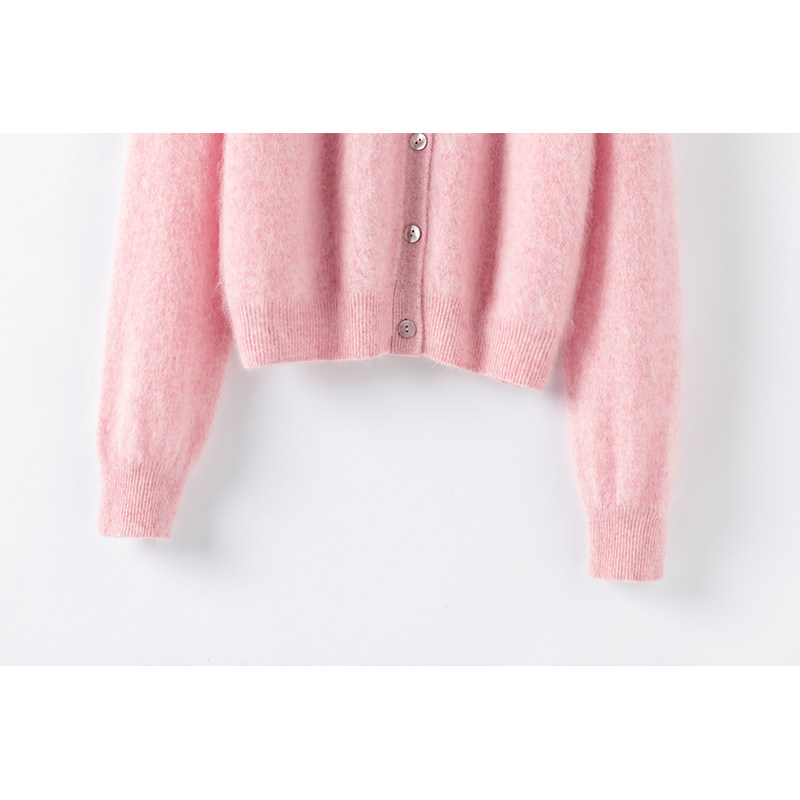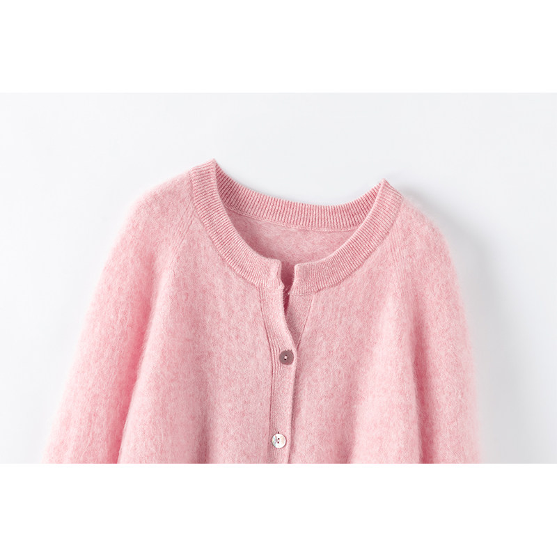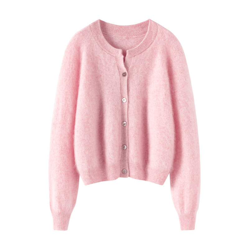 女 花粉色温柔气质毛衣小薄开衫 闭眼入就对了 轻奢拉绒山羊绒开衫