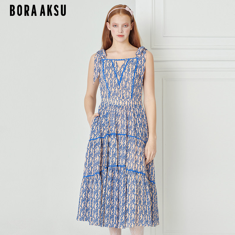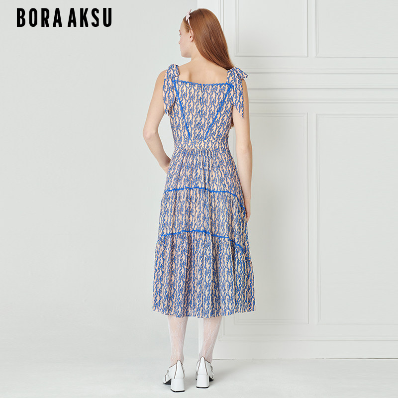 BORAAKSU2023夏季 佩斯利印花蝴蝶结花边吊带连衣裙B1DDW61400 新品