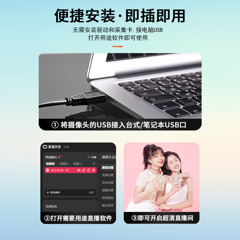 高清直播会议摄像头4K美颜带音响麦克风一体教学台式 笔记本摄影头