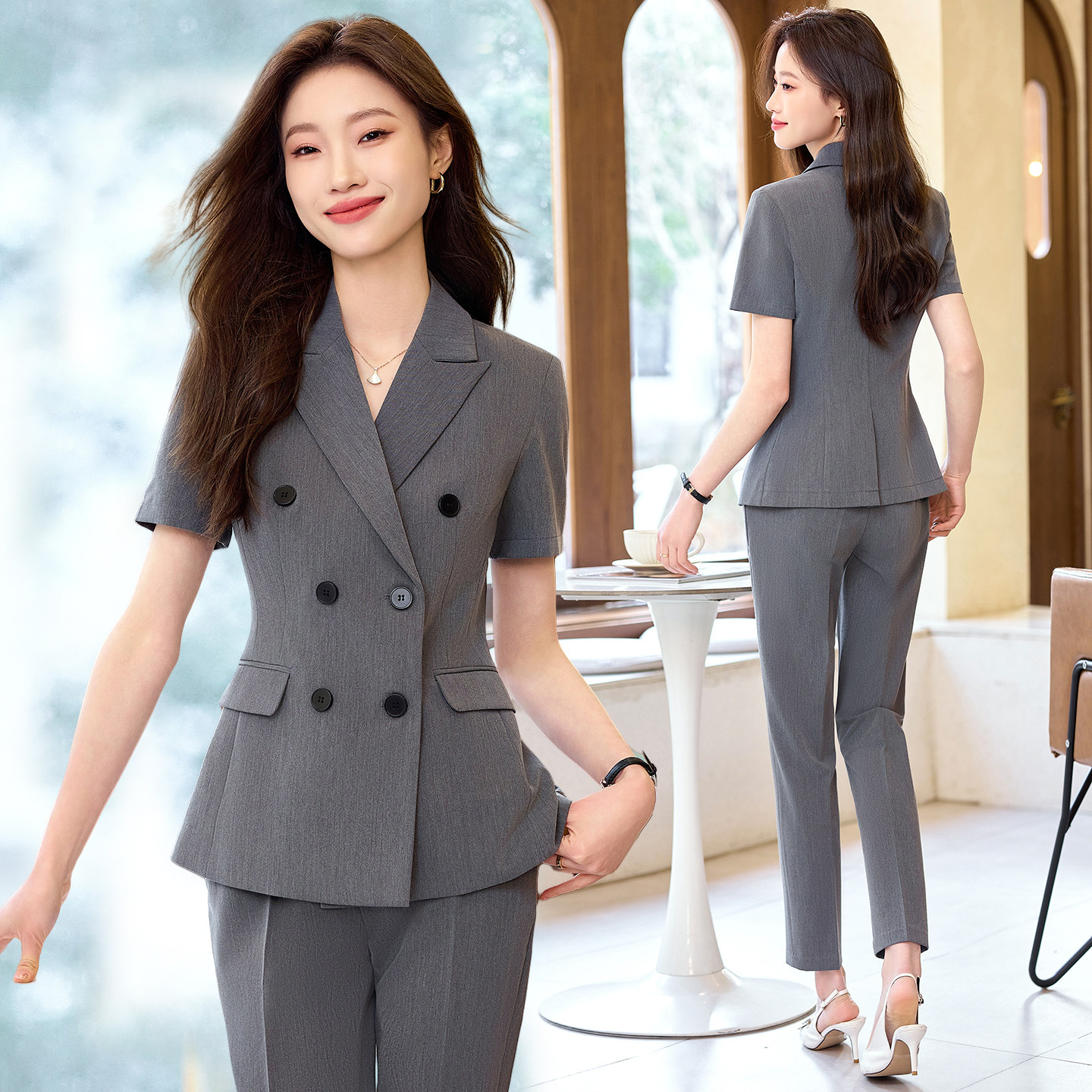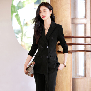 气质职业套装 时尚 外套女2026春夏通勤高级感工作服修身 双排扣西装
