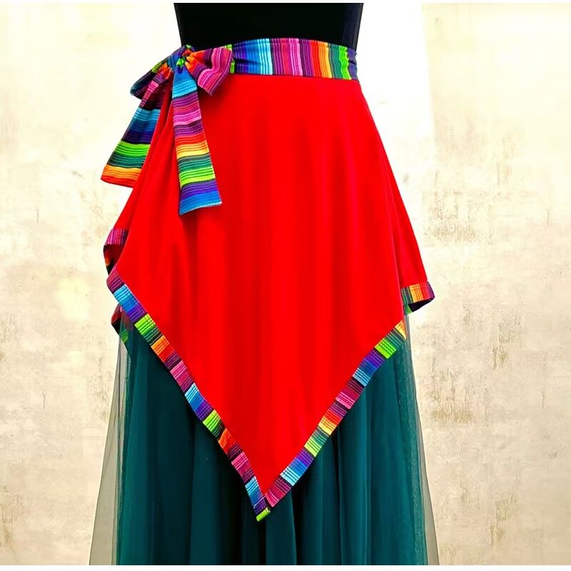 藏族舞 民族围裙表演跳舞练功屁帘裙子百搭广场舞 围裙披肩两用