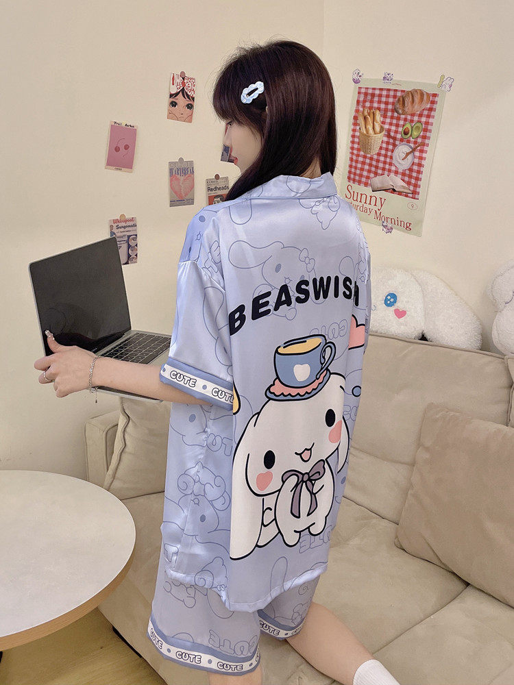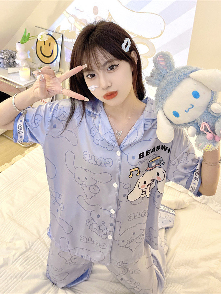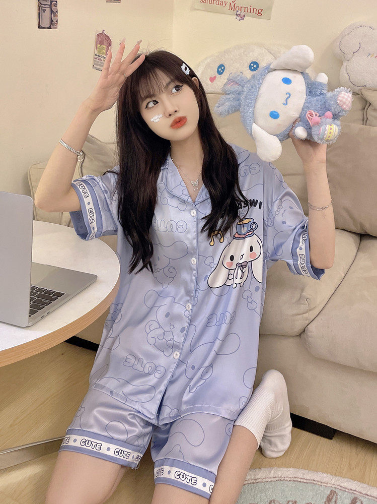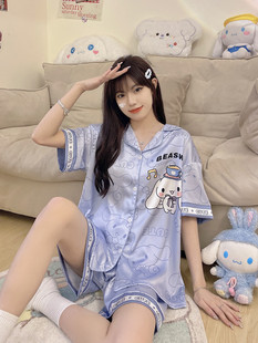可爱玉桂狗学生夏天情侣家居服大码 2026新款 短袖 冰丝绸睡衣女夏季