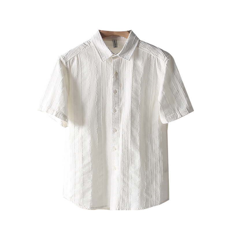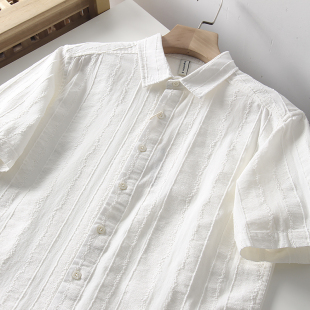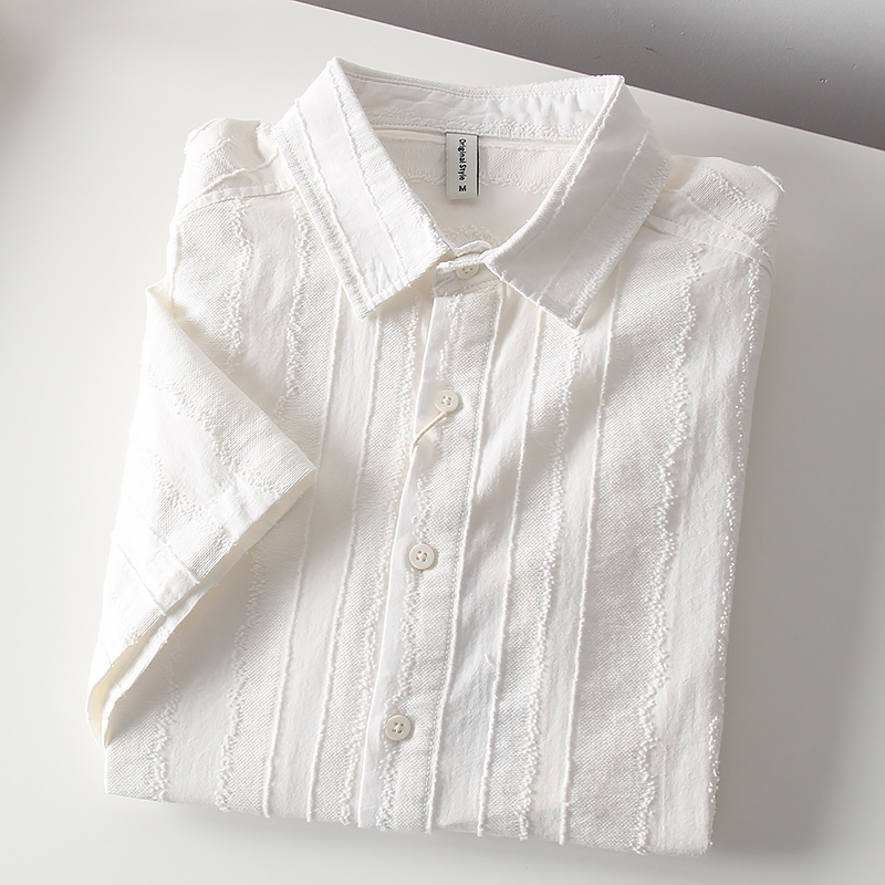 复古提花 衬衫 外贸男装 简约百搭文艺棉麻短袖 潮 夏季 日系小清新