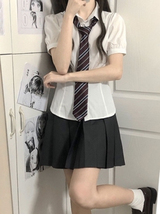 显瘦百搭设计感绑带别致衬衣 女纯欲修身 学院风jk制服短袖 收腰衬衫