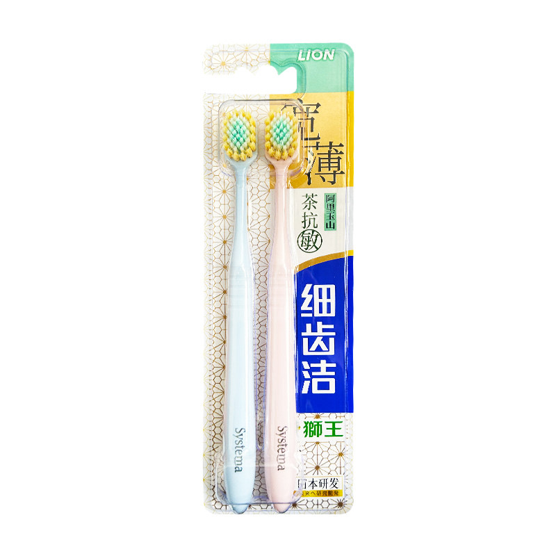 成人 懒人装 日本LION狮王细齿洁宽薄宽头软毛牙刷2支 茶抗敏家庭装