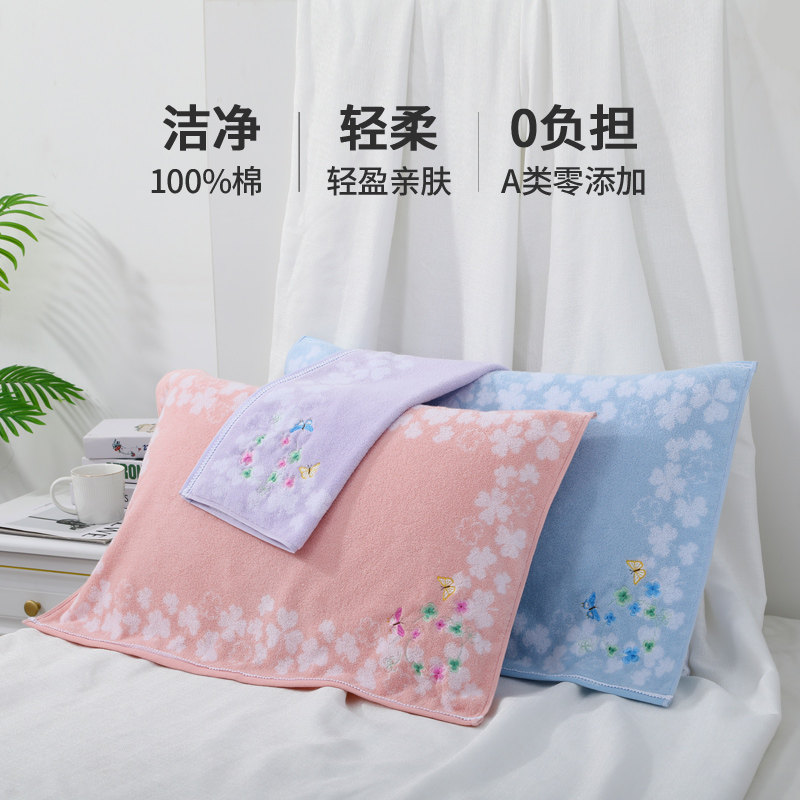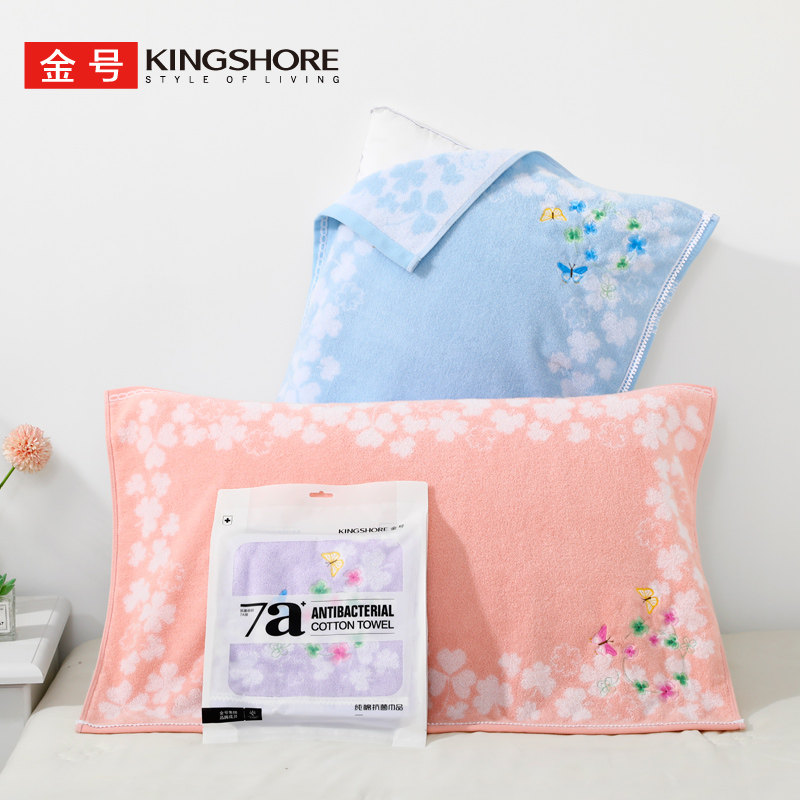 金号枕巾纯棉一对装 卧室枕用清新淡雅绣花枕头巾柔软舒适不掉毛
