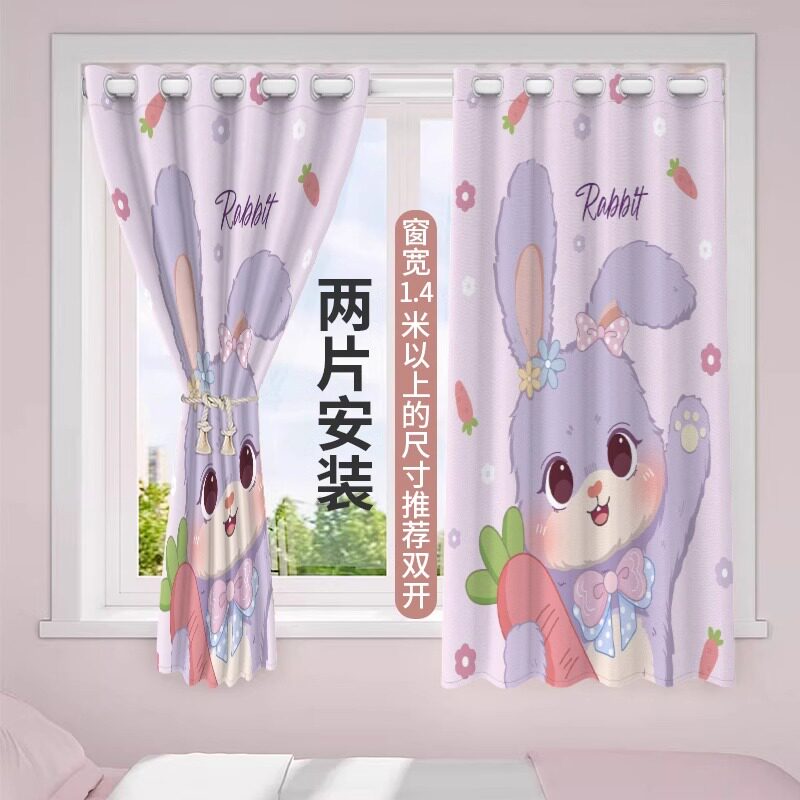 小窗帘遮光2024新款 窗帘杆一整套儿童房男女孩卧室短帘 免打孔安装