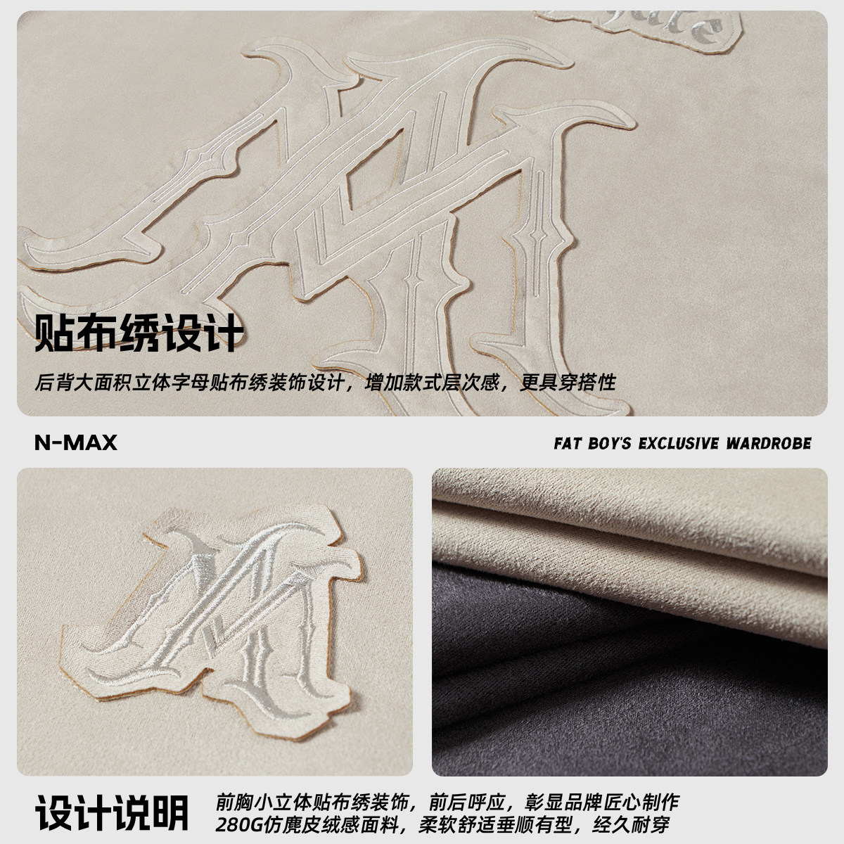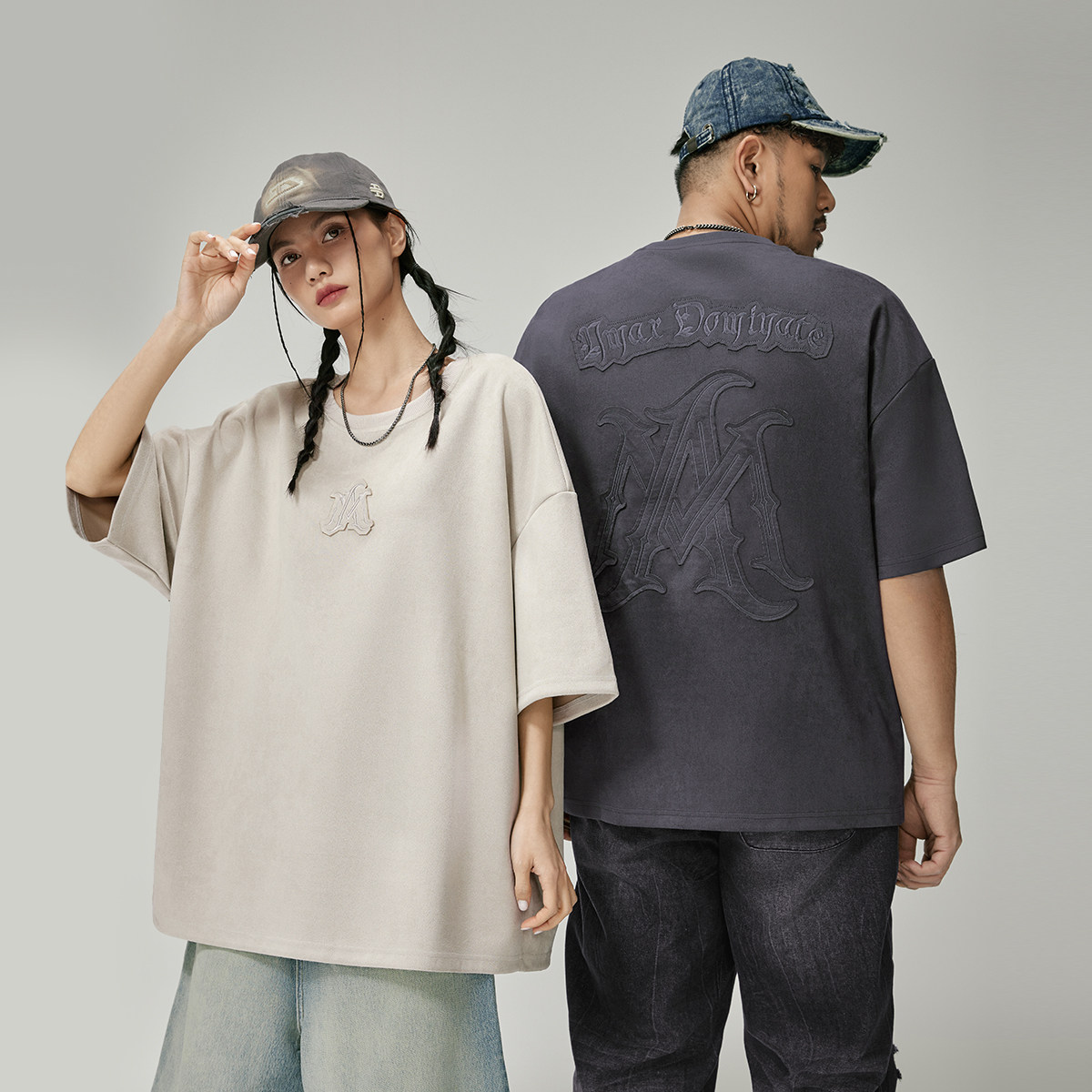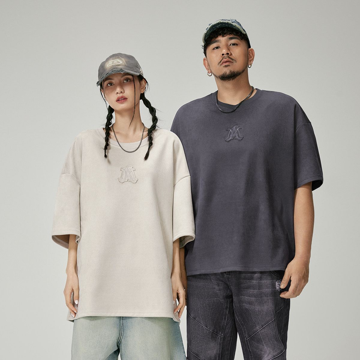 潮牌男装 T恤高街贴布绣情侣装 夏装 纯色绒感短袖 新品 NMAX大码