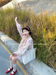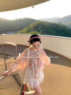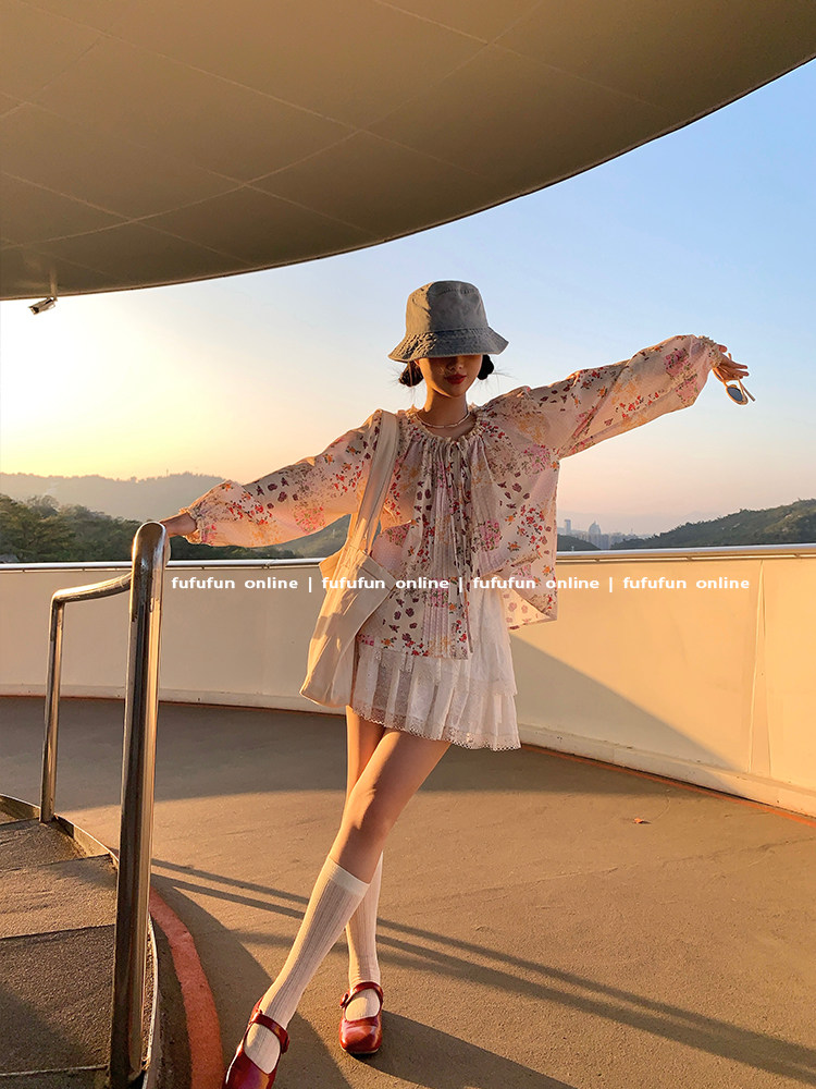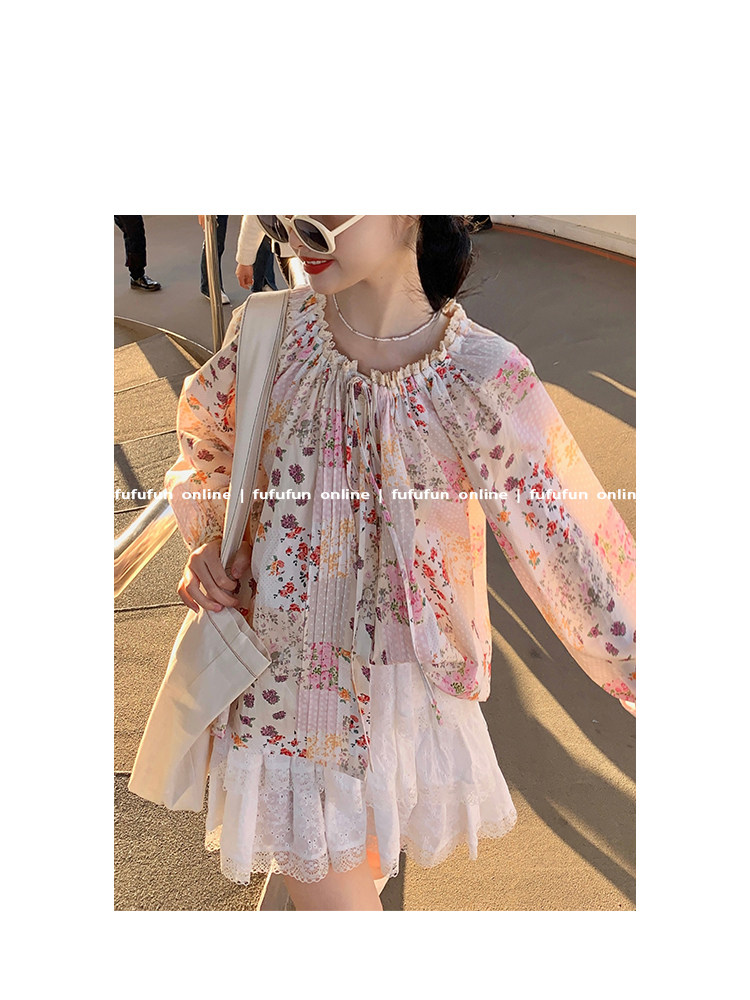 fufufun「甜茶日记」原创春日缤纷少女小碎花小众系带抽绳上衣