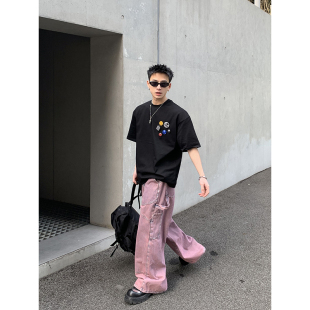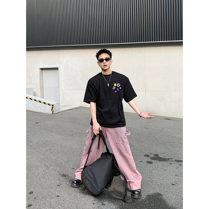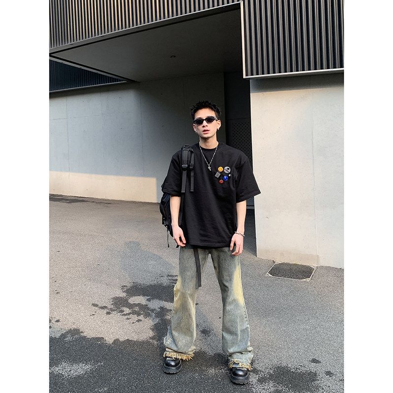 复古简约基础款 美式 男潮流重磅255g多色T恤 徽章DIY摆放短袖 PLTH