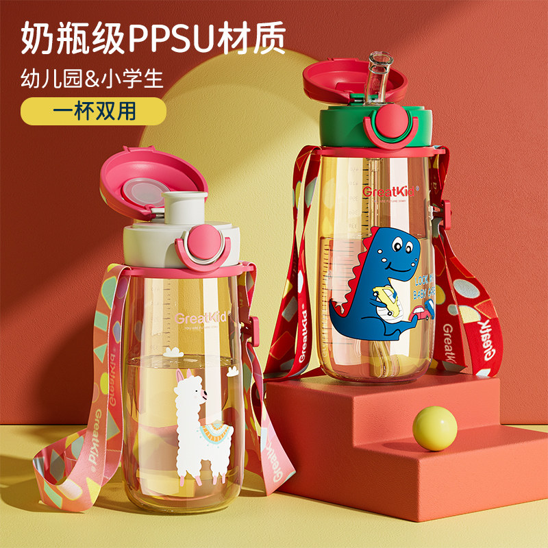 儿童水杯家用带刻度牛奶杯防摔幼儿园宝宝直饮吸管杯米糊喝汤喝奶