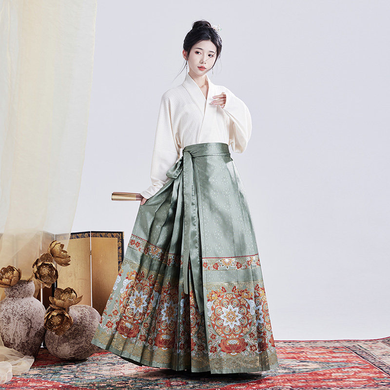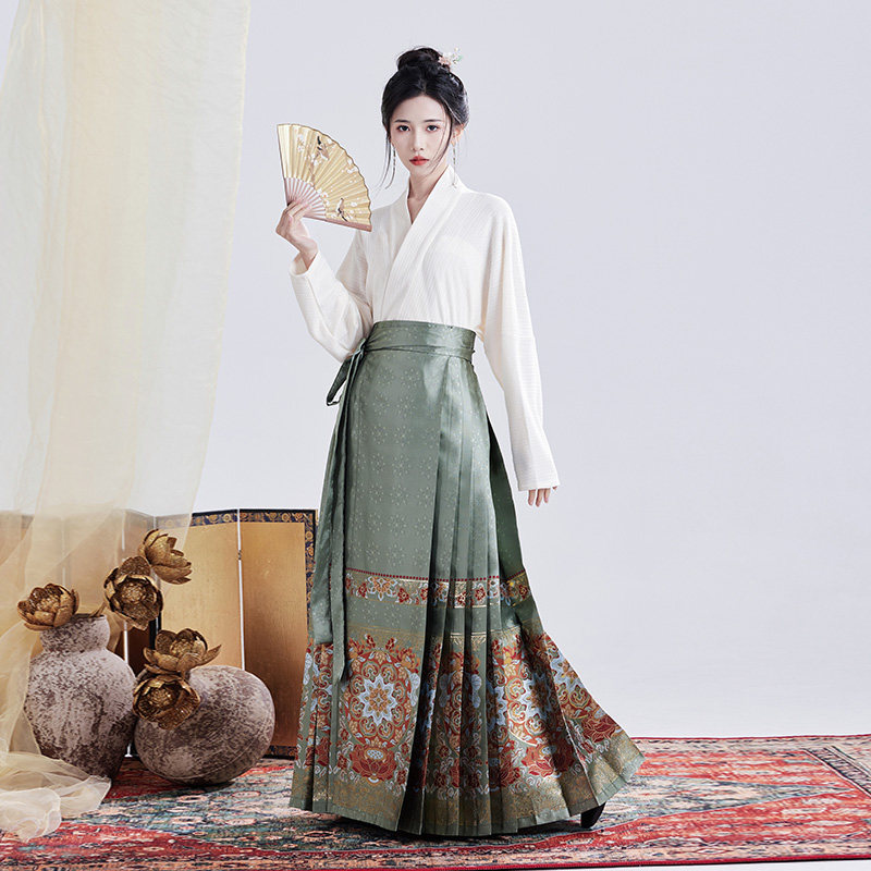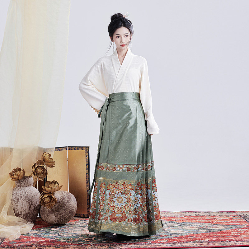 交领上衣日常可穿汉服套装 新中式 国风马面裙成人女明制意莲华新款