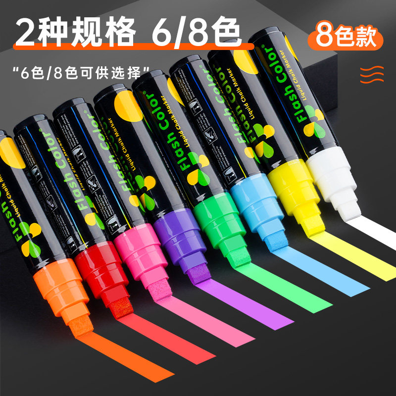 荧光板专用笔LED电子发光荧光笔广告牌小黑板笔彩色记号笔水性可擦POP粗头玻璃镜面萤光白板笔夜光摆摊大容量