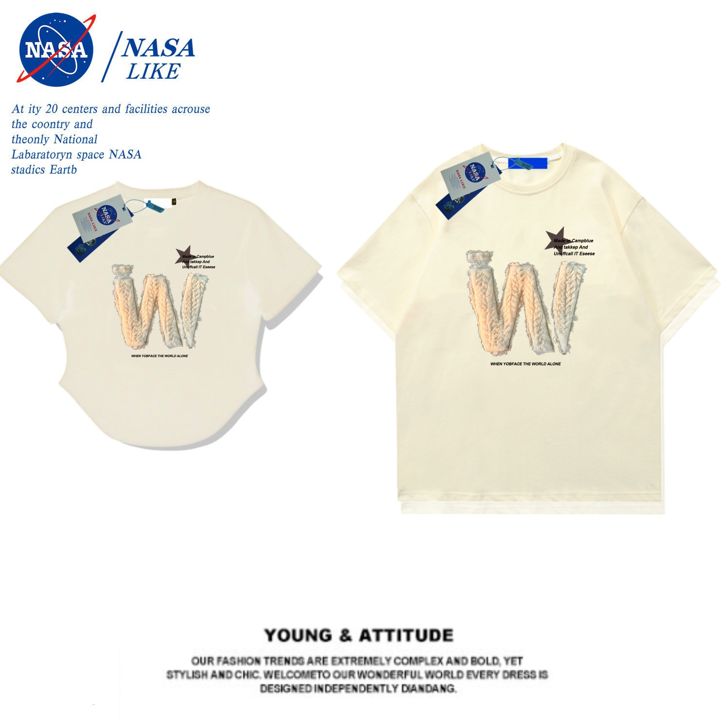 t恤男女春夏季 纯棉正肩短袖 辣妹上衣 情侣装 NASA一长一短宽松短款