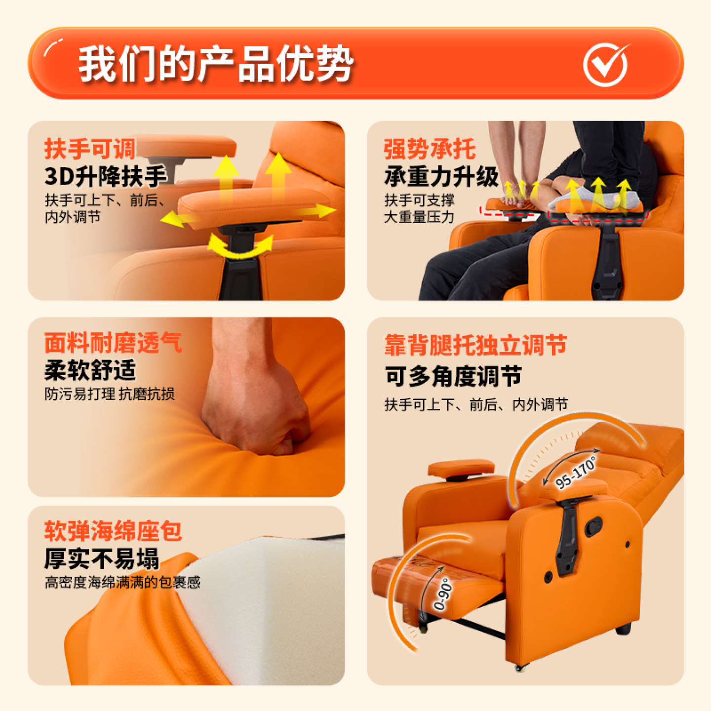 帕沙曼功能沙发电动猫抓布艺沙发小户型可调节云朵奶油风直排沙发