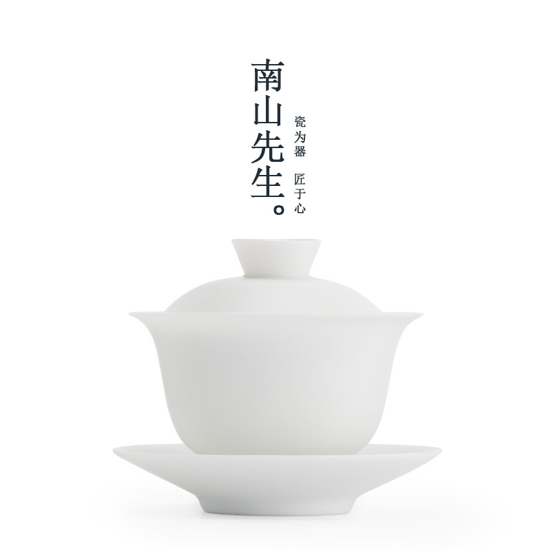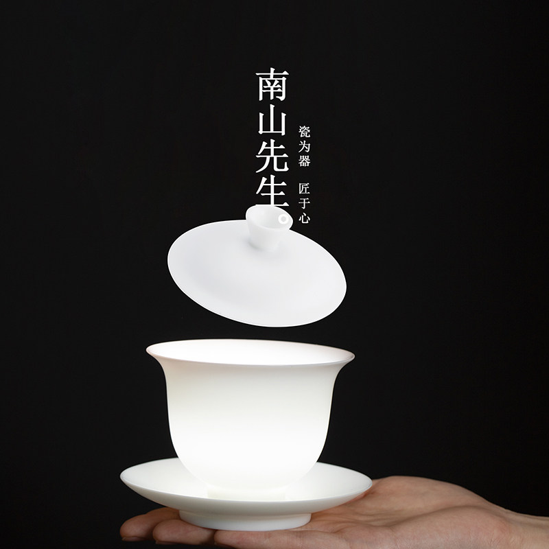 羊脂玉白瓷盖碗茶杯单个家用泡茶碗三才盖碗盖子功夫茶具大号高档
