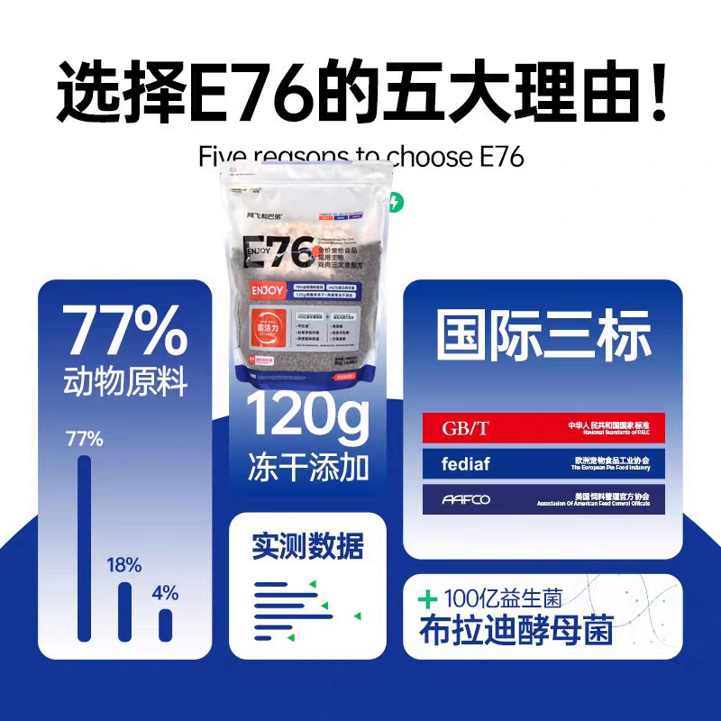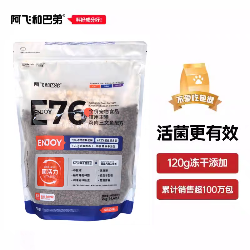 阿飞和巴弟猫粮E76无谷2kg冻干生骨肉成幼粮8全阶段4斤360g试吃10