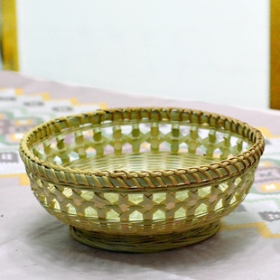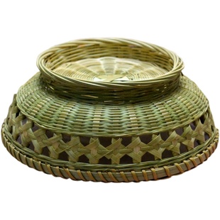竹编水果篮藤口带底座手编糕点收纳篮果盘家用竹篮广西洗菜沥水筐