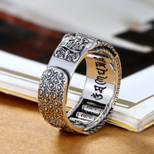 复古转动珠戒子情侣潮人个性 原创设计路路款 霸气貔貅戒指纯银男士