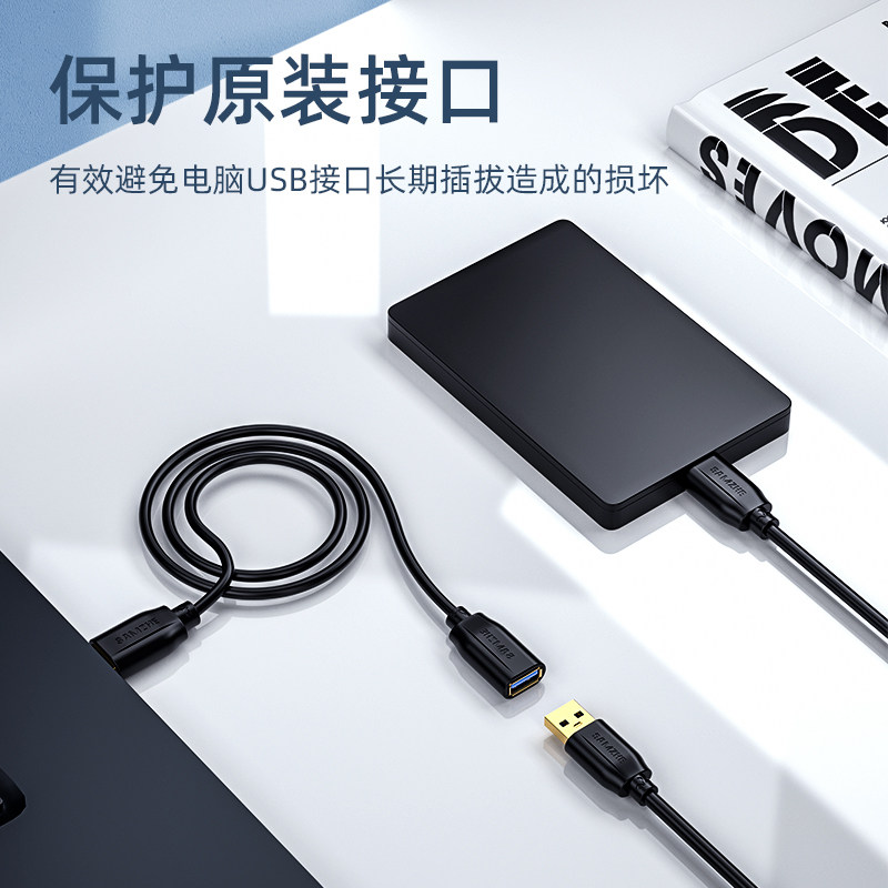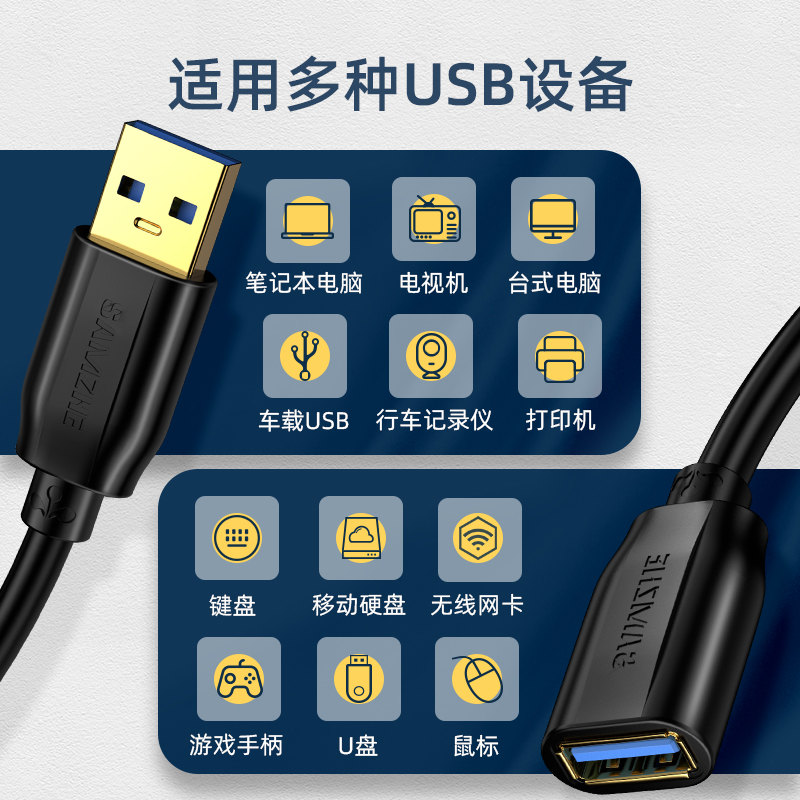 5米电视鼠标打印机电脑键盘U盘转接头车载供电充电扩展器 山泽usb延长线公对母加长数据连接线1