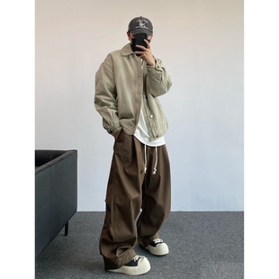 男直筒宽松肥大潮牌休闲长裤 复古纯色廓形弯刀西裤 EVDY美式 SMDSK