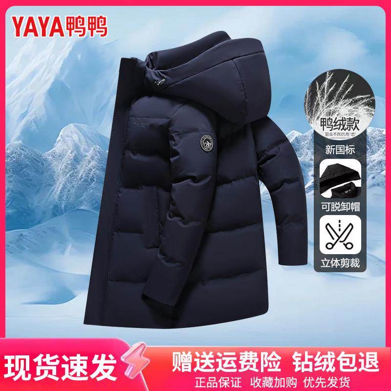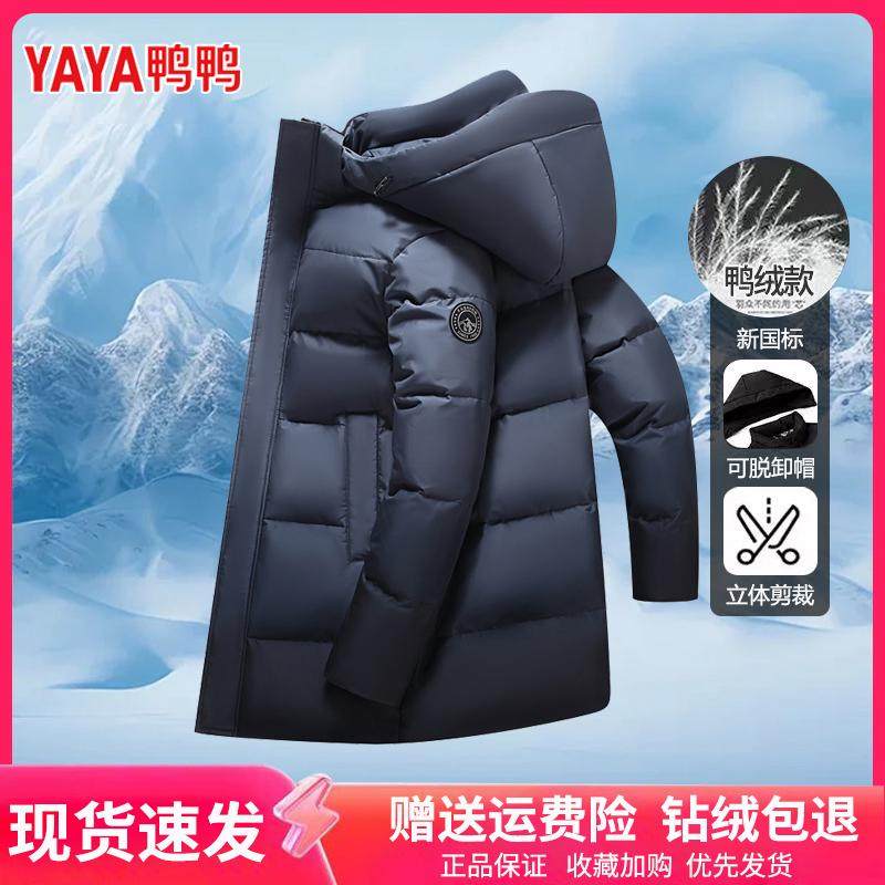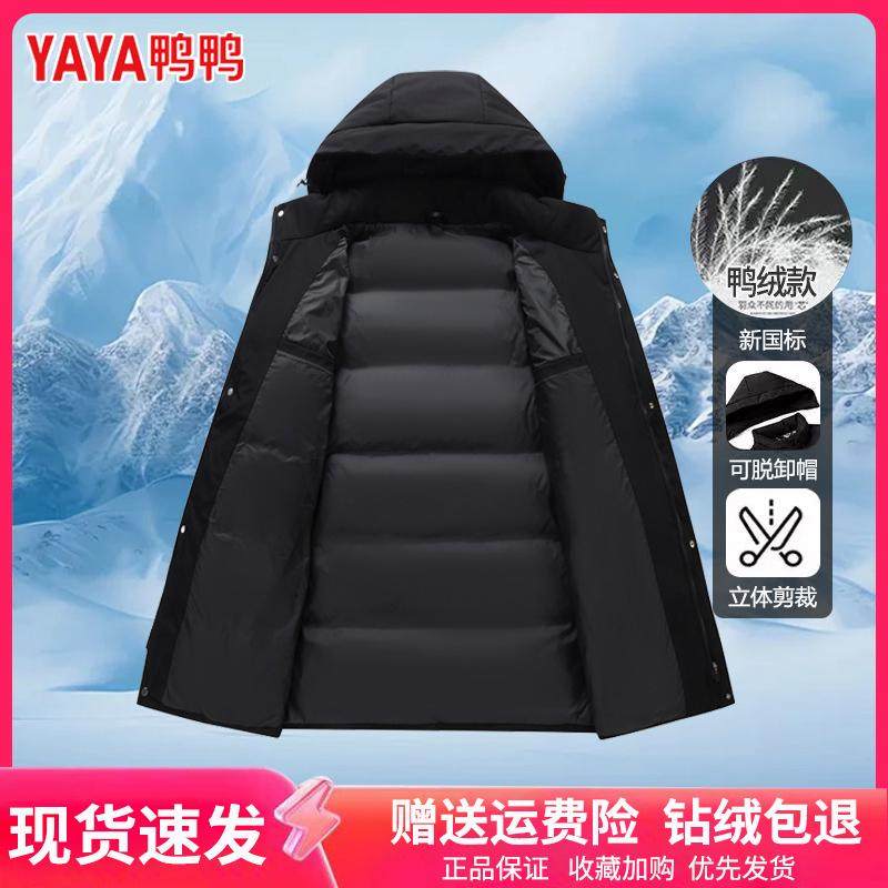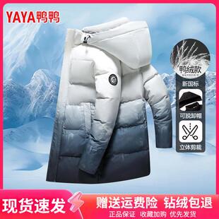 羽绒服男士 时尚 加厚中长款 冬季 保暖连帽外套潮男 2024新款 鸭鸭正品