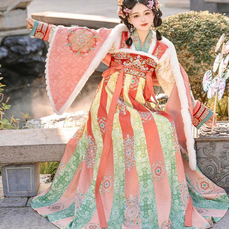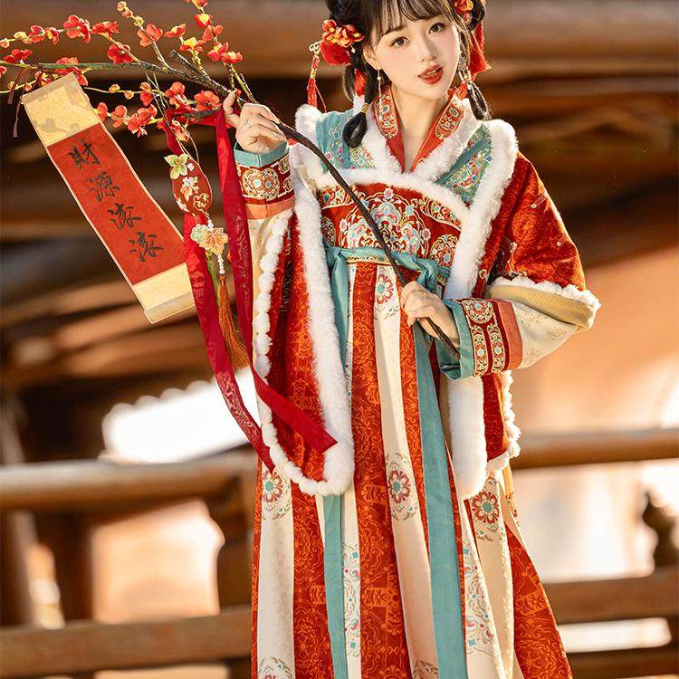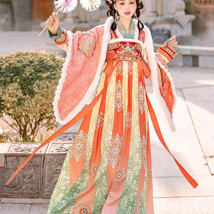 刺绣唐褙子加绒交领售完绝版 原创唐制汉服冬季 翠金鎏羽 轻汉坊