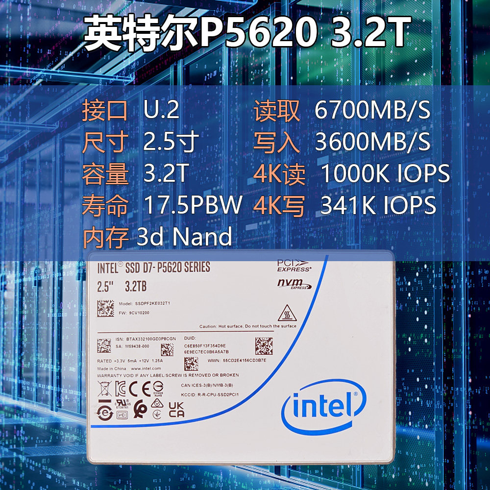 3.2T P5620 PCIE4.0固态硬盘 SSDPF2KE032T1N1英特尔D7 solidigm