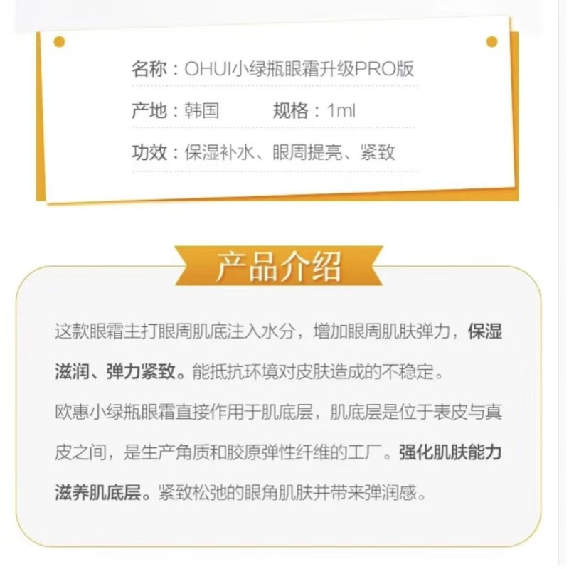 20片抗皱保湿 宝藏眼霜 韩国OHUI空姐小绿瓶眼霜1ML 正品 润而不油