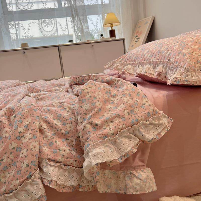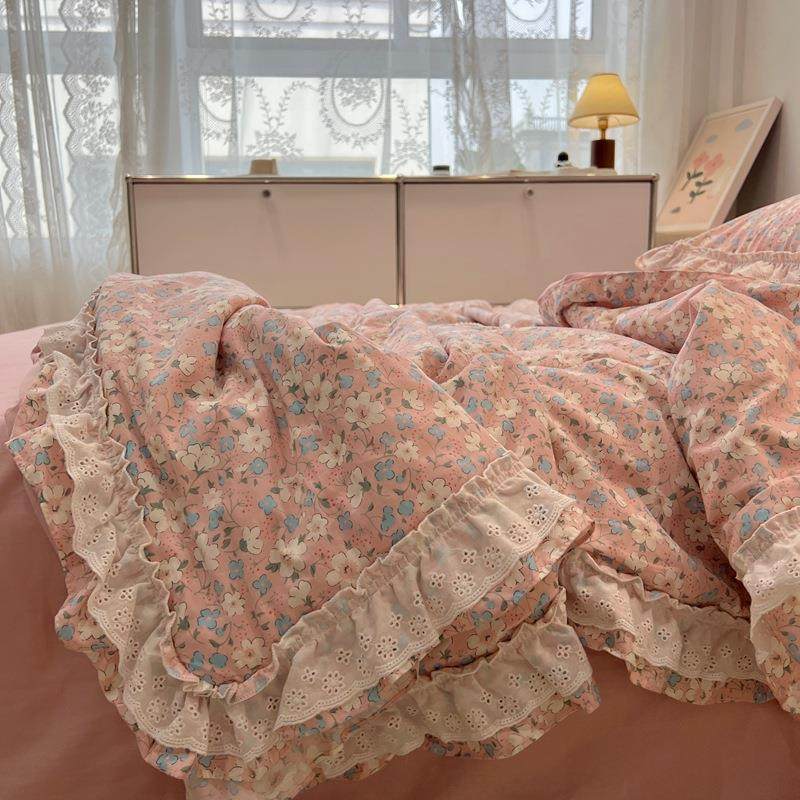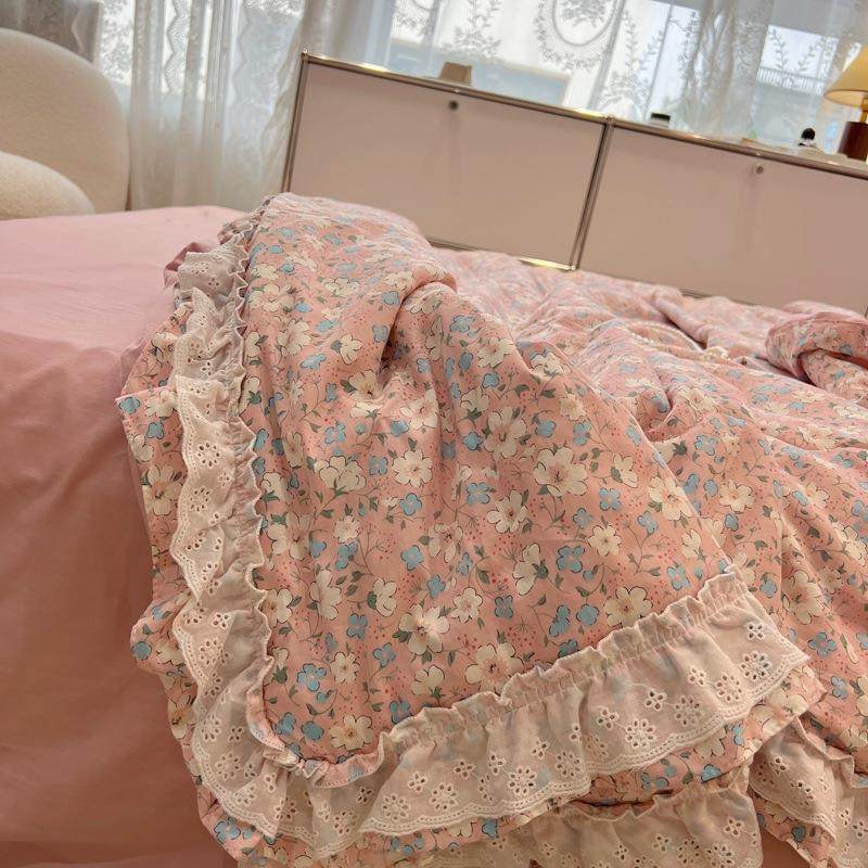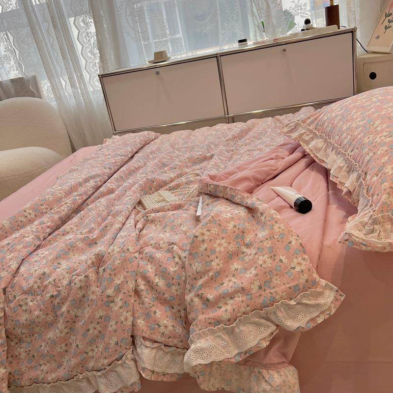 韩式 夏凉被四件套可机洗 蕾丝夏被少女心空调被公主风薄被子床裙式
