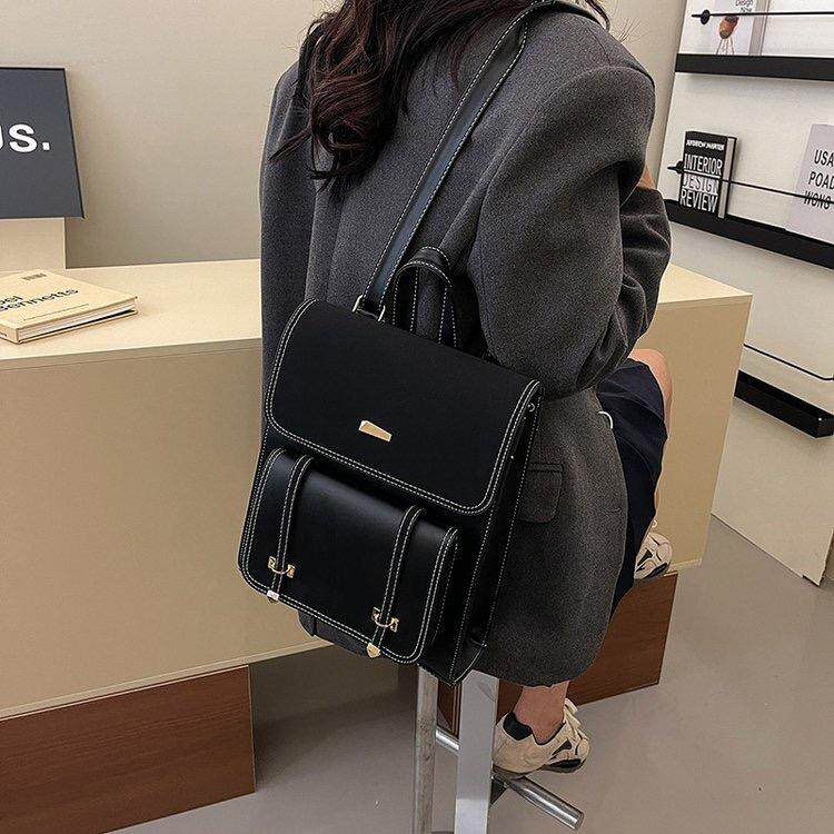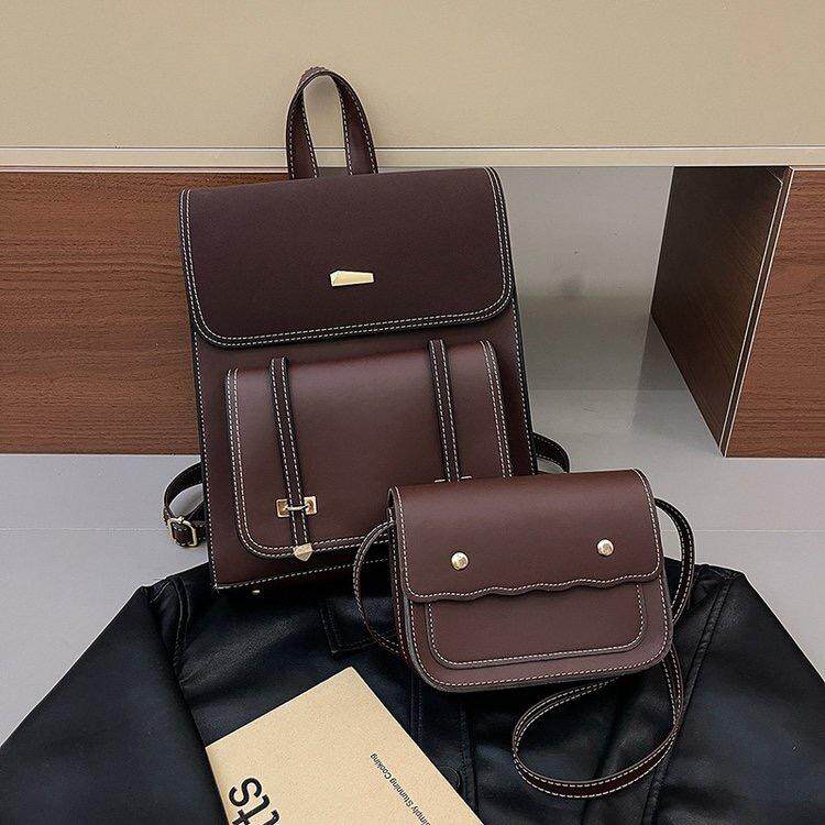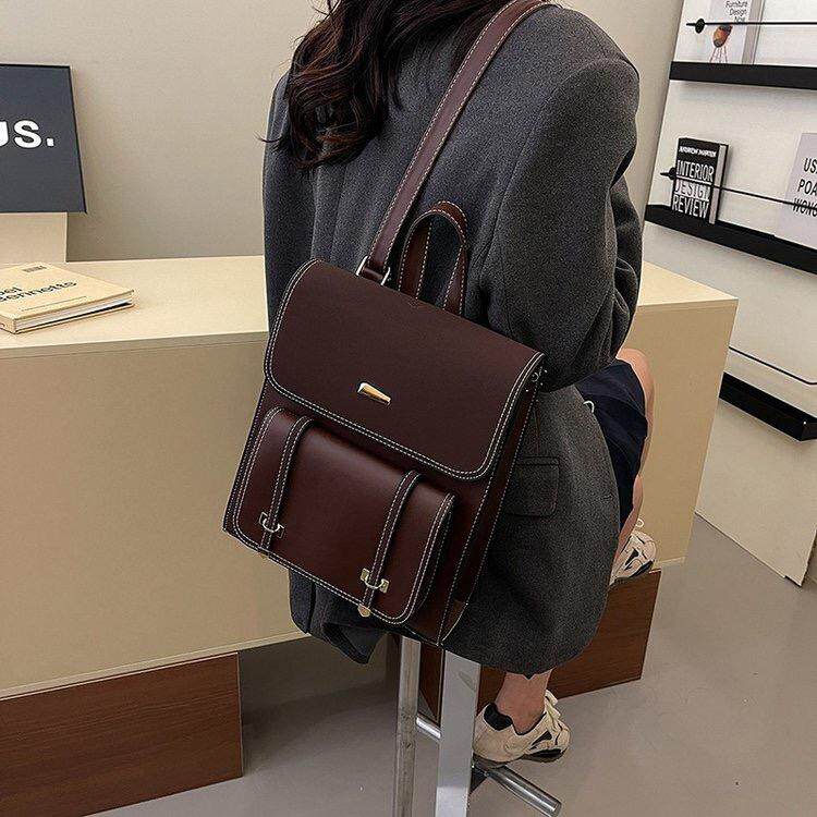 复古双肩包女高级感小众百搭两用背包2025新款 英伦学院风书包 韩版