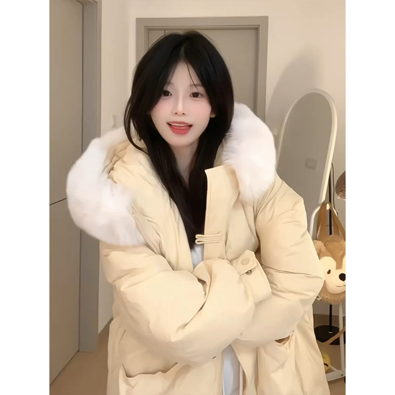 棉服女高级感大毛领加厚大衣外套潮 过膝冬装 300斤大码 胖mm中长款