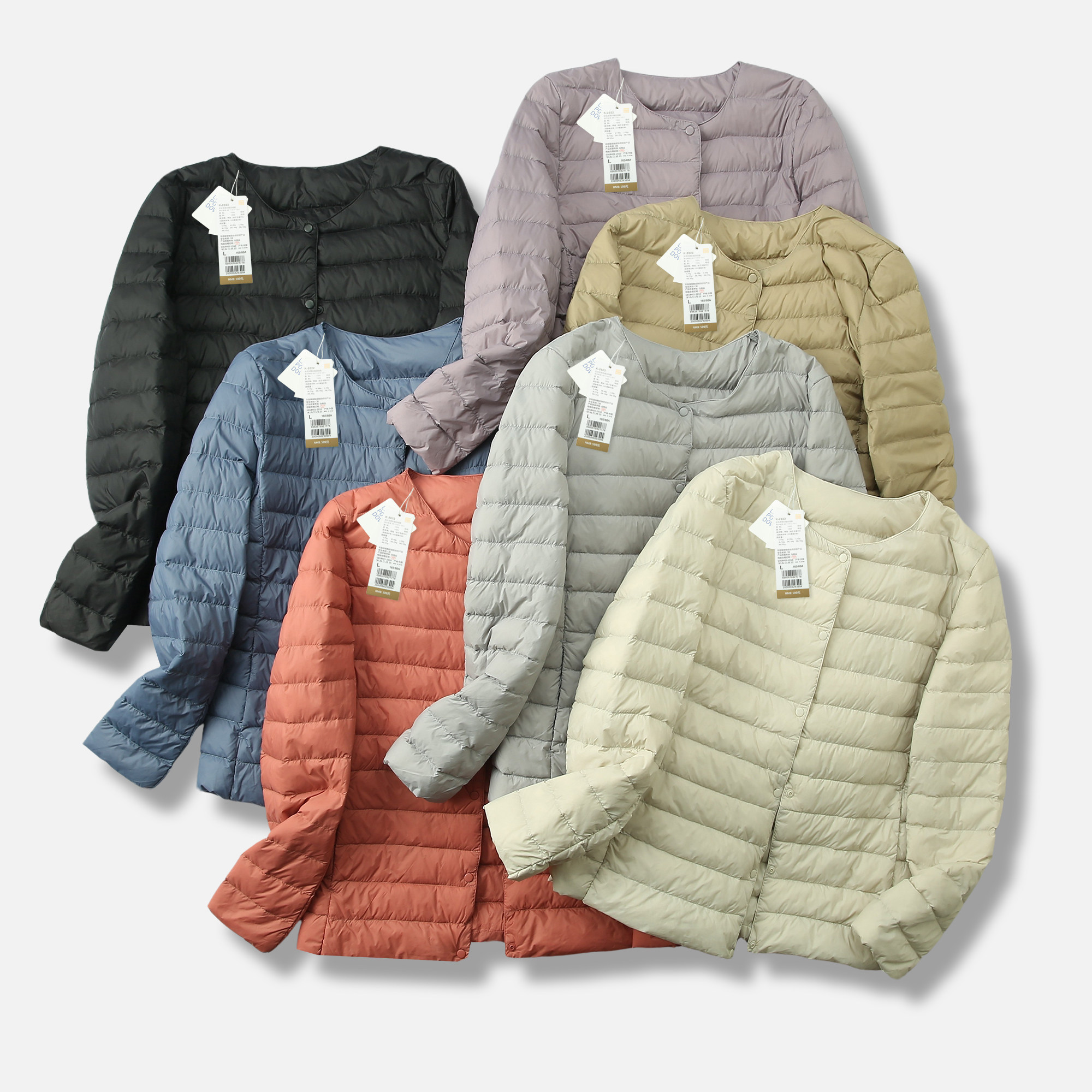 门店599 女士时尚 90鸭绒 新款 无领轻薄羽绒服 冬季 难得女款
