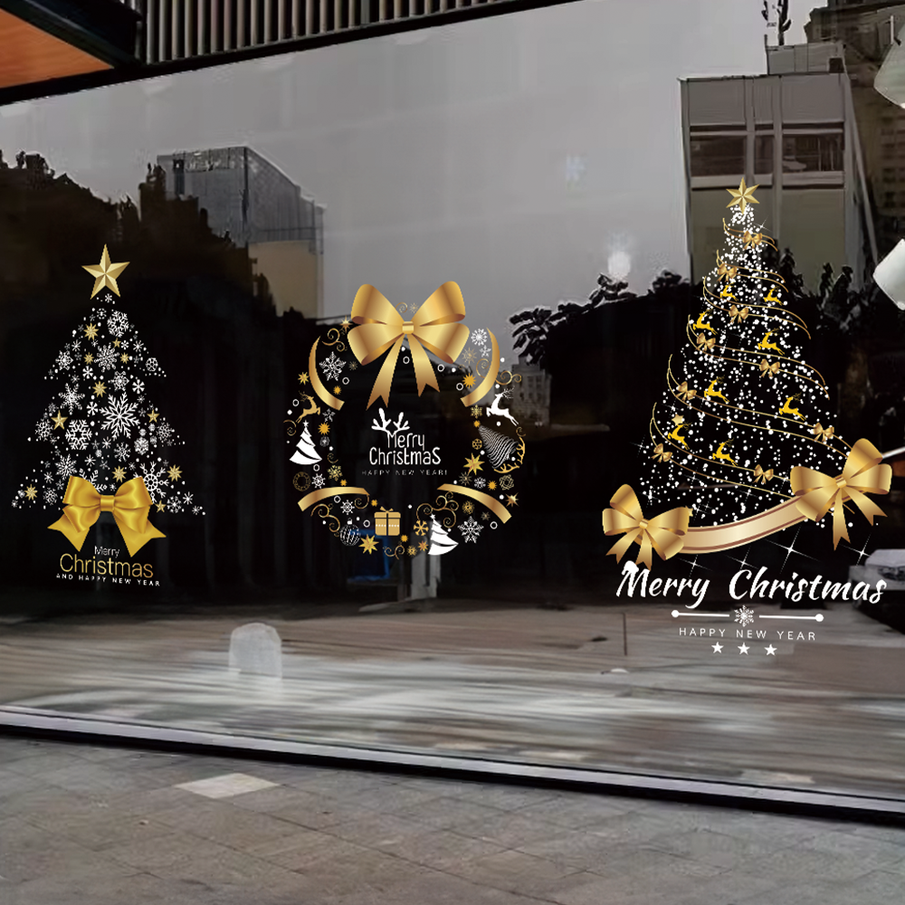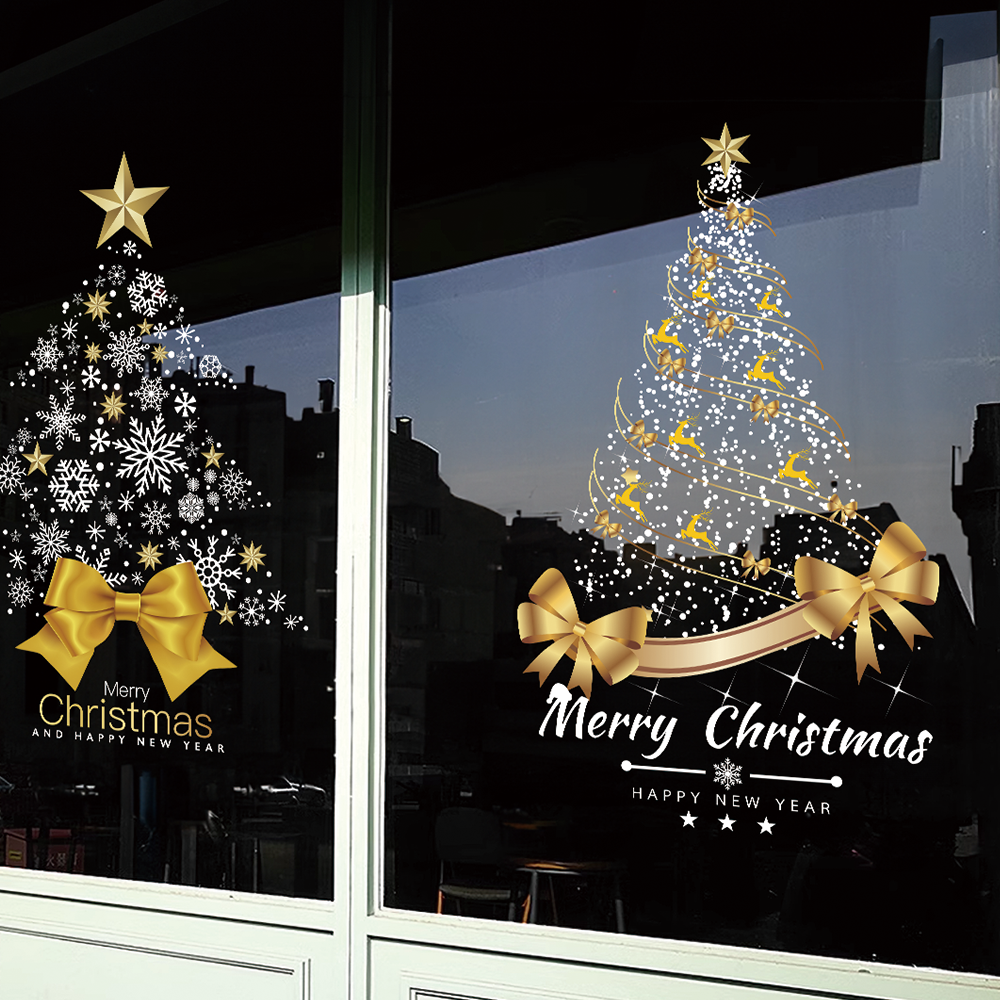圣诞节装 饰窗贴圣诞树贴画仿毛毡窗花商店铺橱窗静电玻璃贴门贴纸
