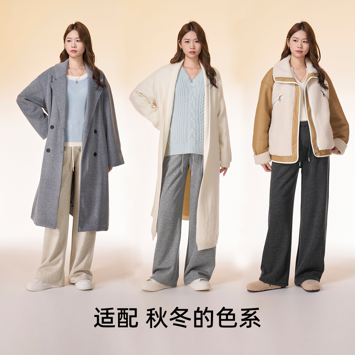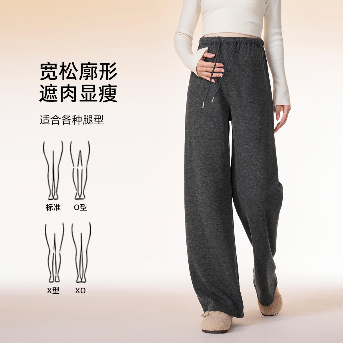 冬装 孕妇羊羔绒阔腿裤 子秋冬外穿休闲无托腹糯米裤 加绒加厚裤 冬季