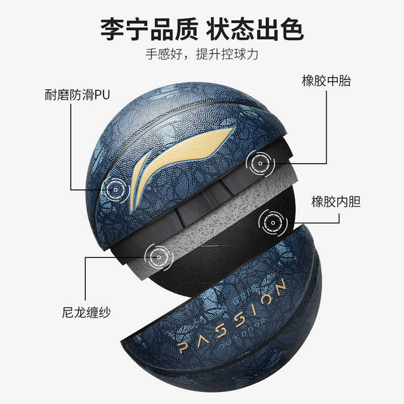 李宁篮球橡胶初中生专用成人标准7号橡胶球室外5号小学生儿童训练