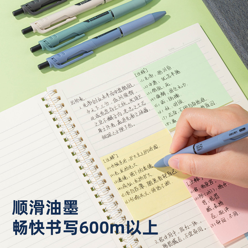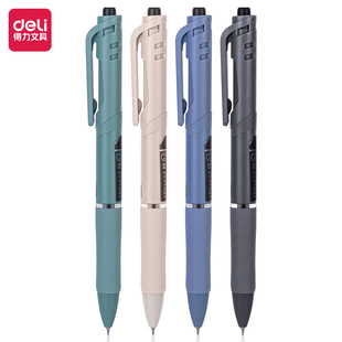 得力S01 加强尖锥头圆珠笔蓝黑教师办公文具用品 A按动中性笔水笔学生用考试碳素黑色水性签字笔芯0.5mm按压式