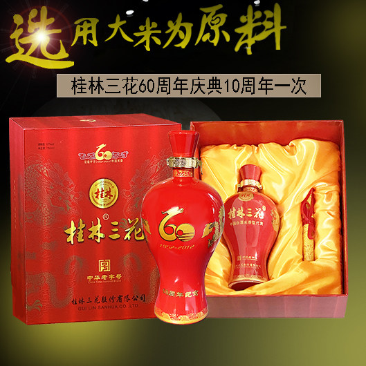 2013桂林三花酒52度米香型白酒60周年庆典高度收藏老酒礼盒750ml
