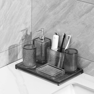 家用漱口杯牙杯轻奢酒店卫浴五件套洗漱台浴室托盘牙刷杯洗漱杯