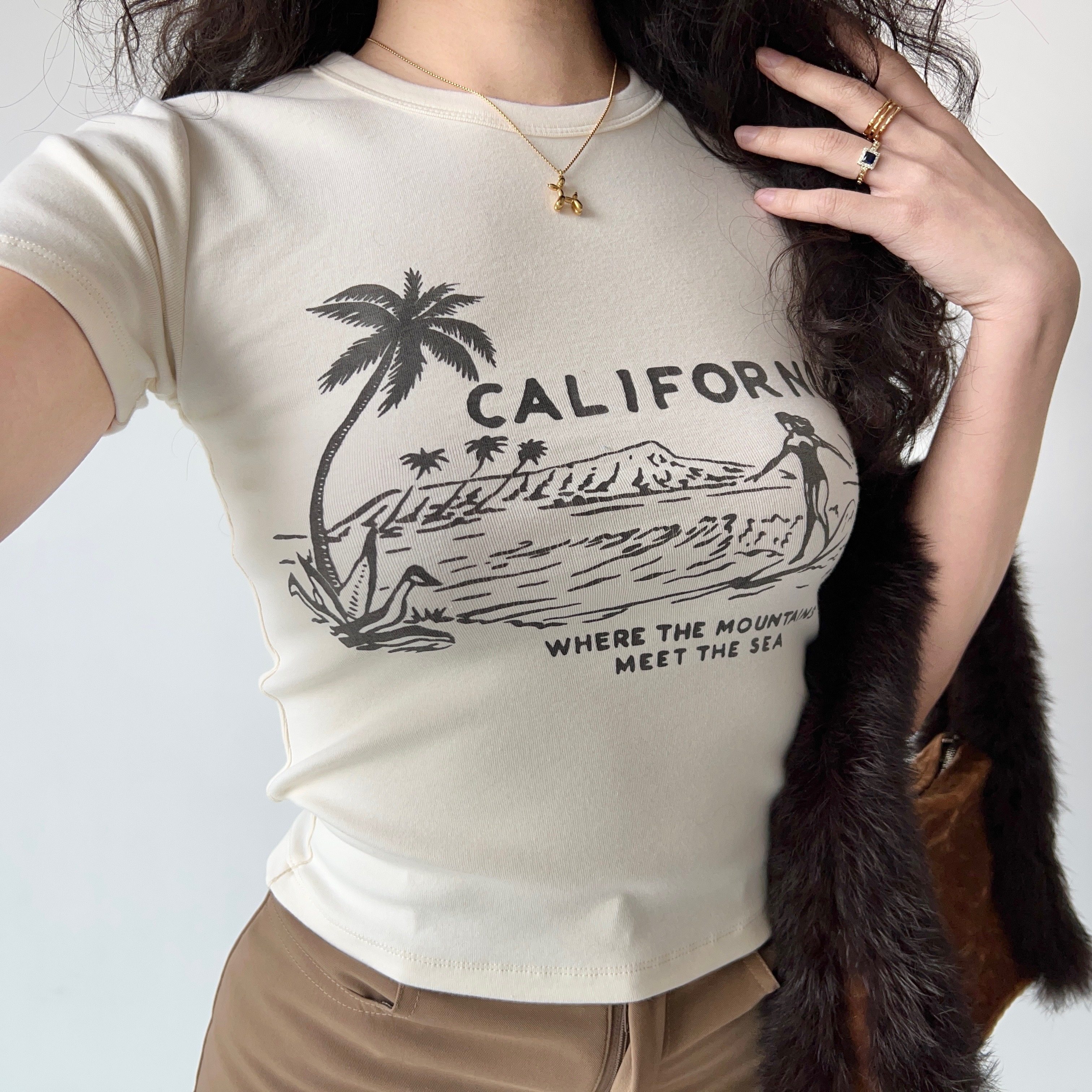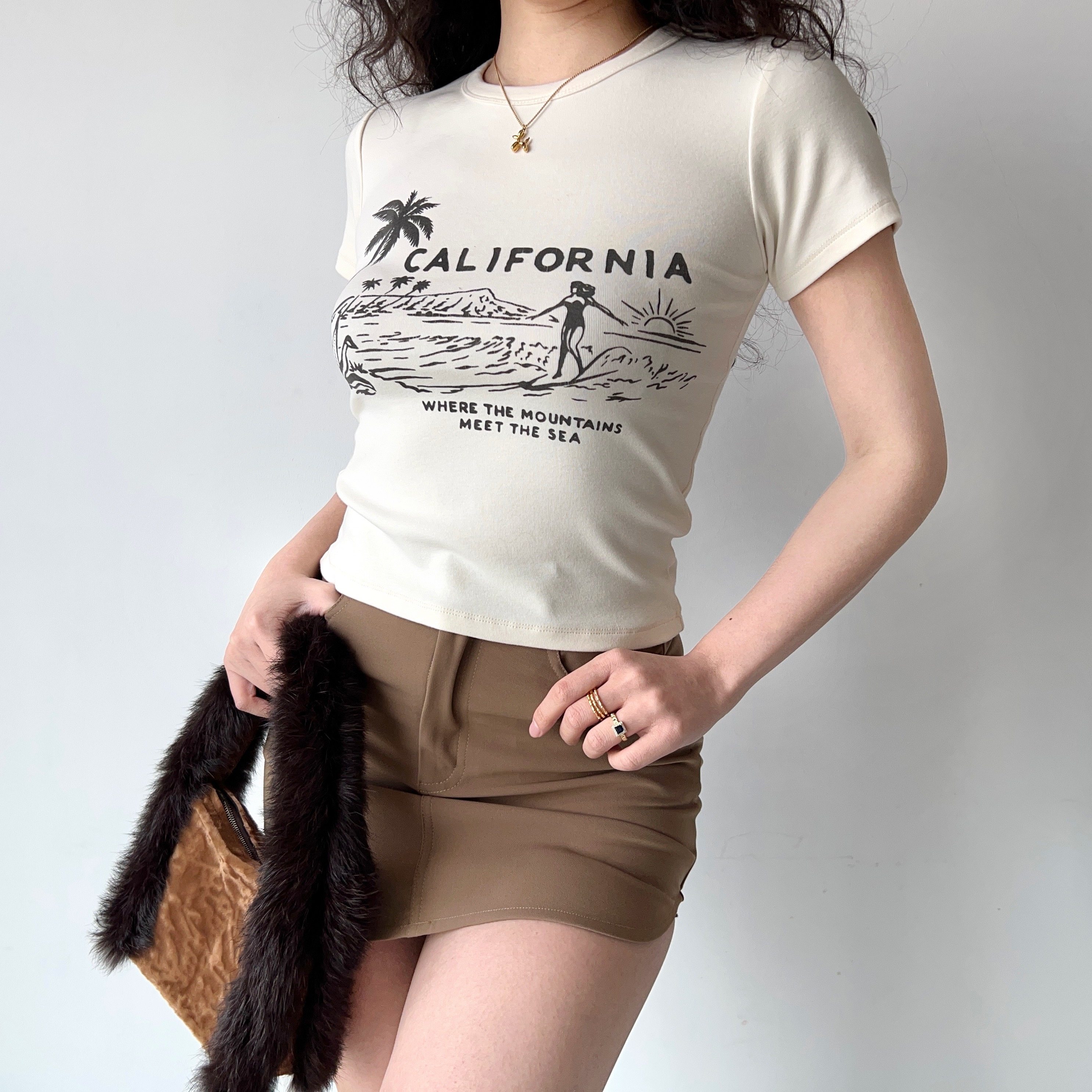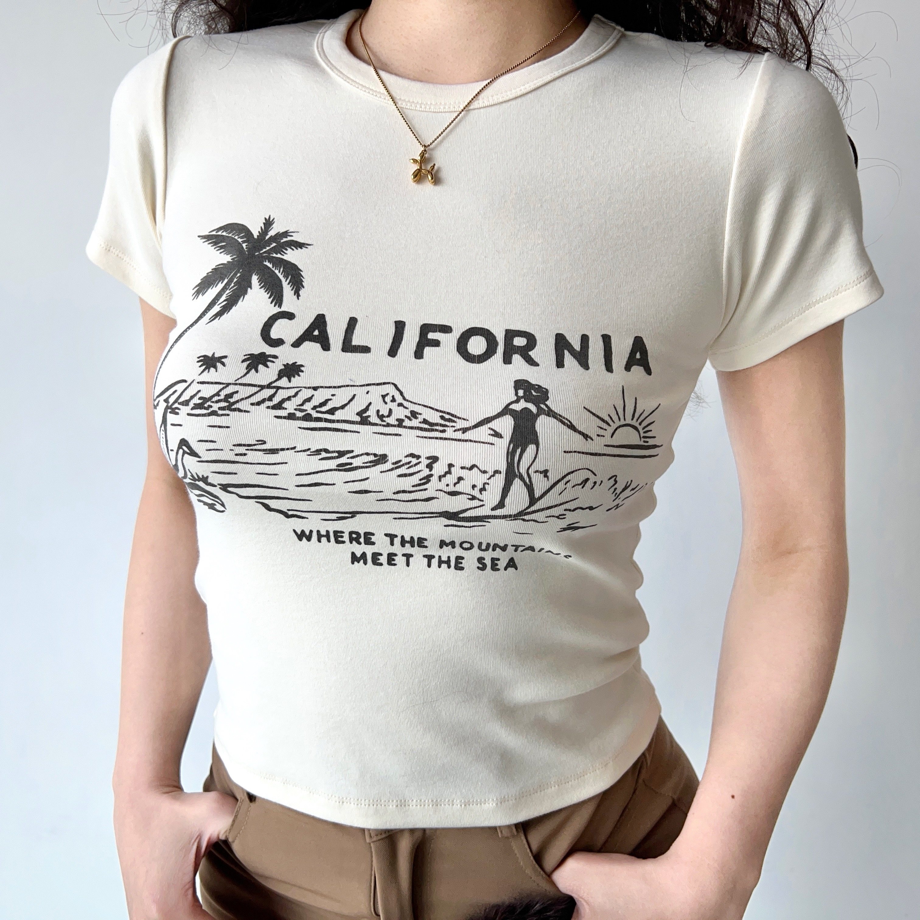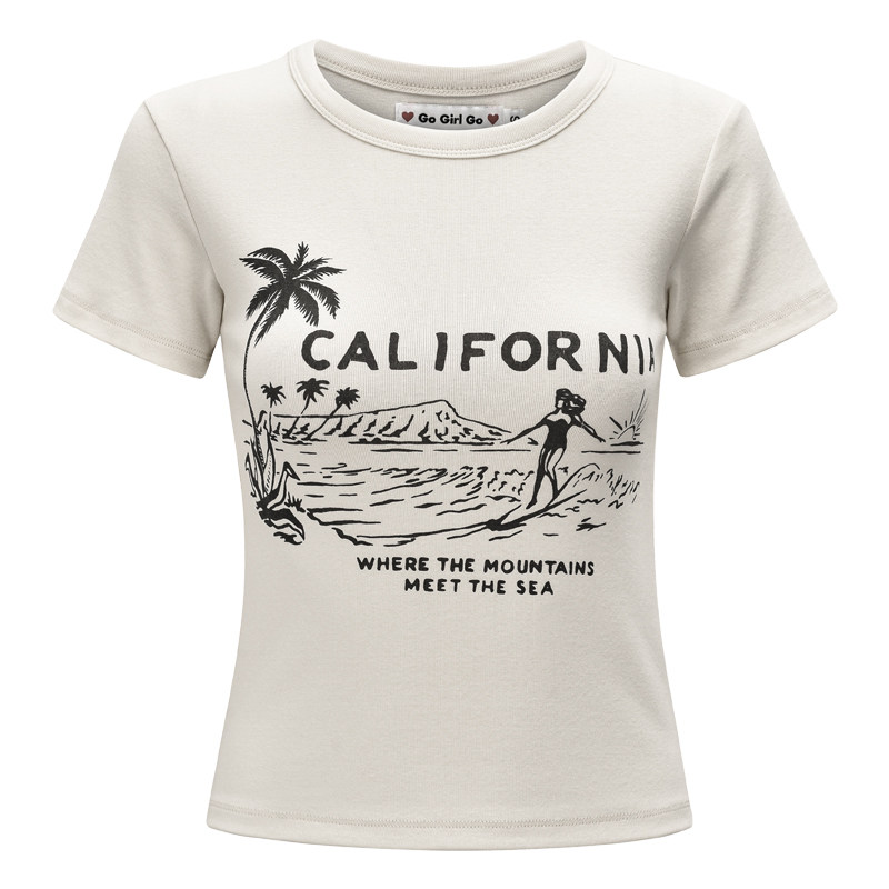 短款 棉T恤女修身 自制欧美风夏日冲浪印花圆领短袖 上衣 Girl