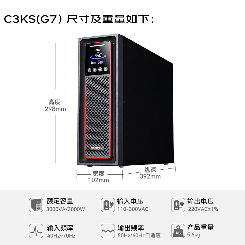 3000W在线式 3000VA UPS不间断电源外接电池续航2小时 山特C3KS