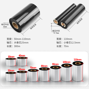 100标签打印机碳带增强铜版 8090 纸水洗唛合成色带不干胶吊牌 蜡基混合基全树脂碳带卷友森110X300m