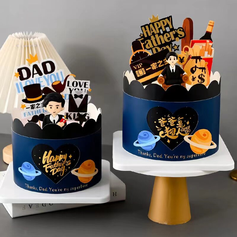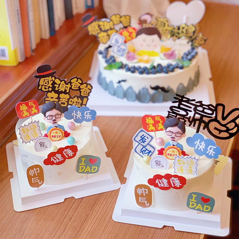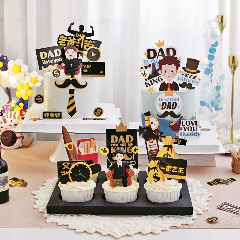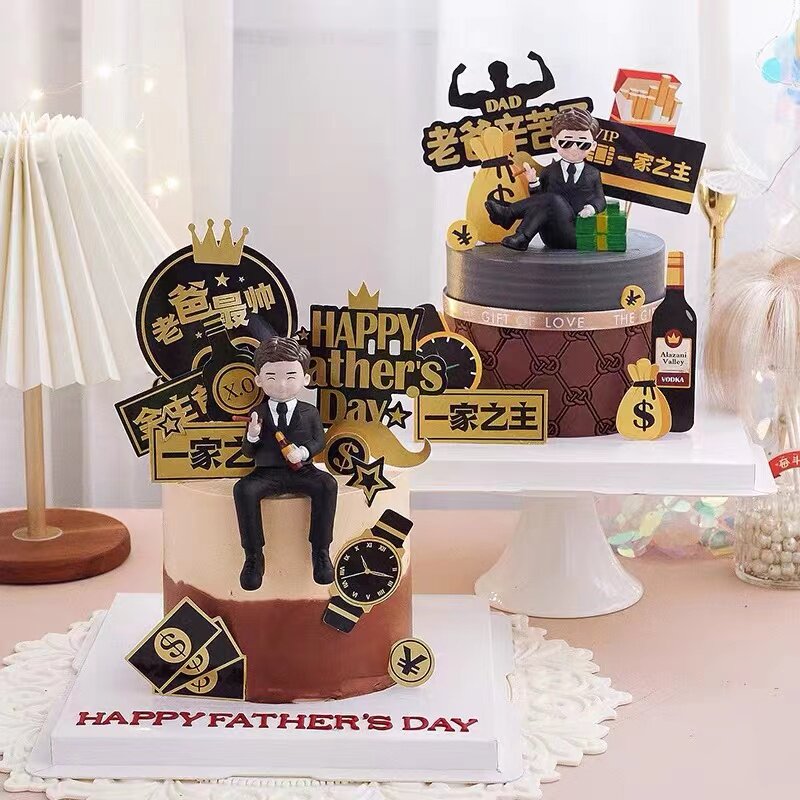 父亲节蛋糕装 饰插件软陶人偶酒瓶摆件派对老爸生日甜品台摆件摆件