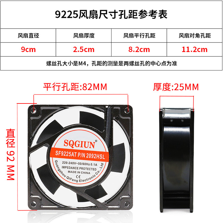 2092HBL SF9225AT 厂家直销静音双滚珠散热风扇220V 9025轴流风机