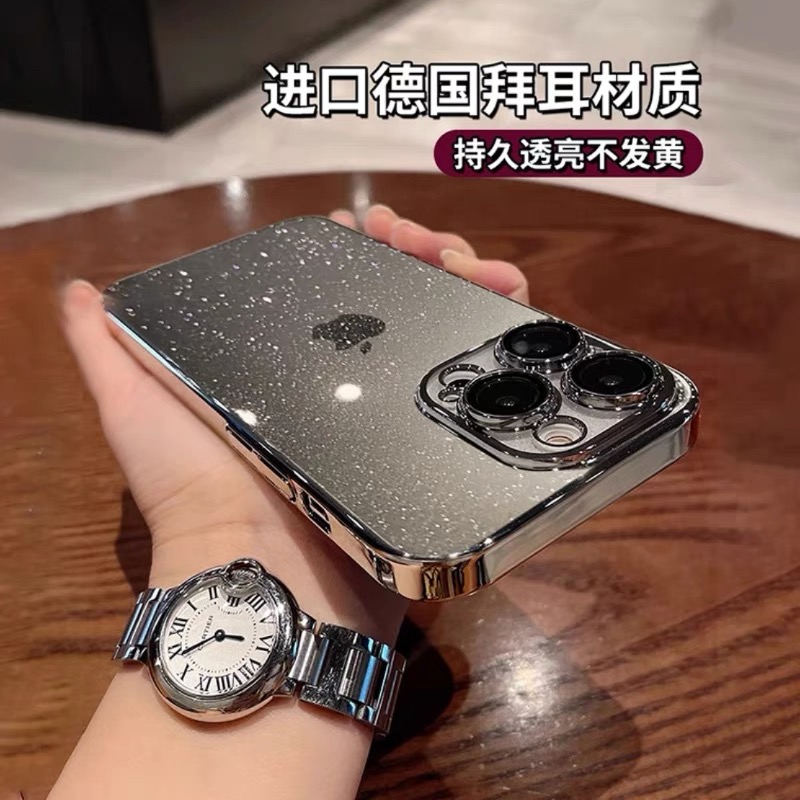 闪粉适用苹果16Promax壳暗紫色15pro透明硬壳iPhone17带镜头膜16p包镜头14防尘电镀保护套11防摔女奢华13简约