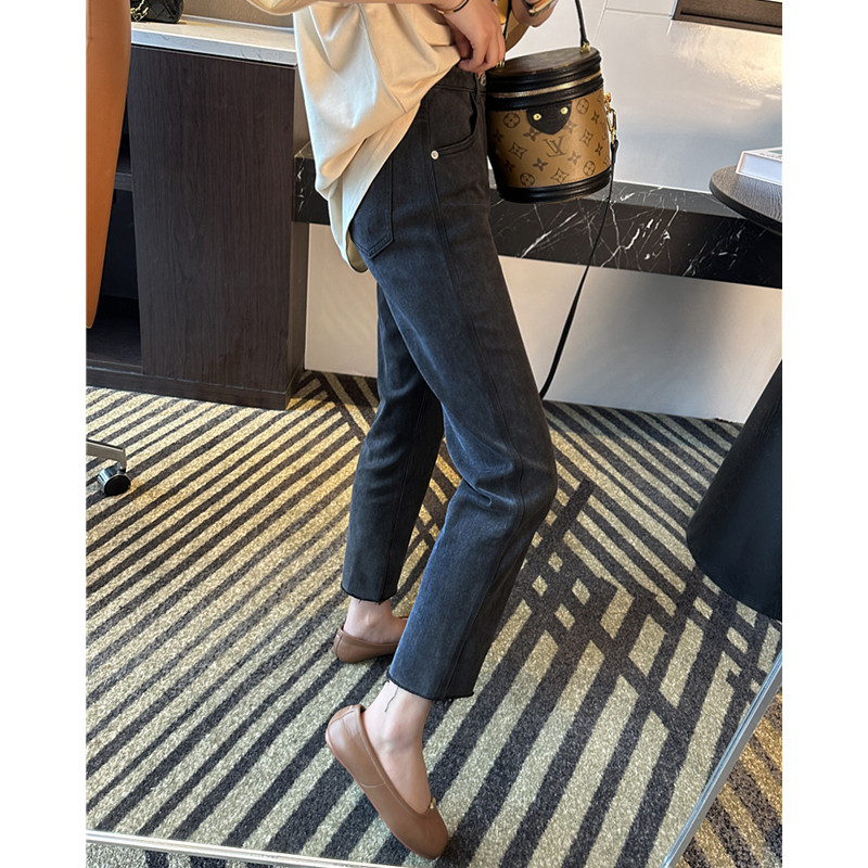 黑色通勤直筒裤 Navigare意大利小帆船厚款 新款 女25冬季 加绒牛仔裤