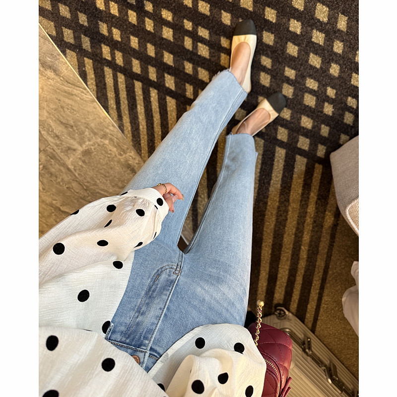 显瘦拖地裤 MENGJIAN浅蓝色直筒牛仔长裤 高腰阔腿裤 新款 子 女26春季